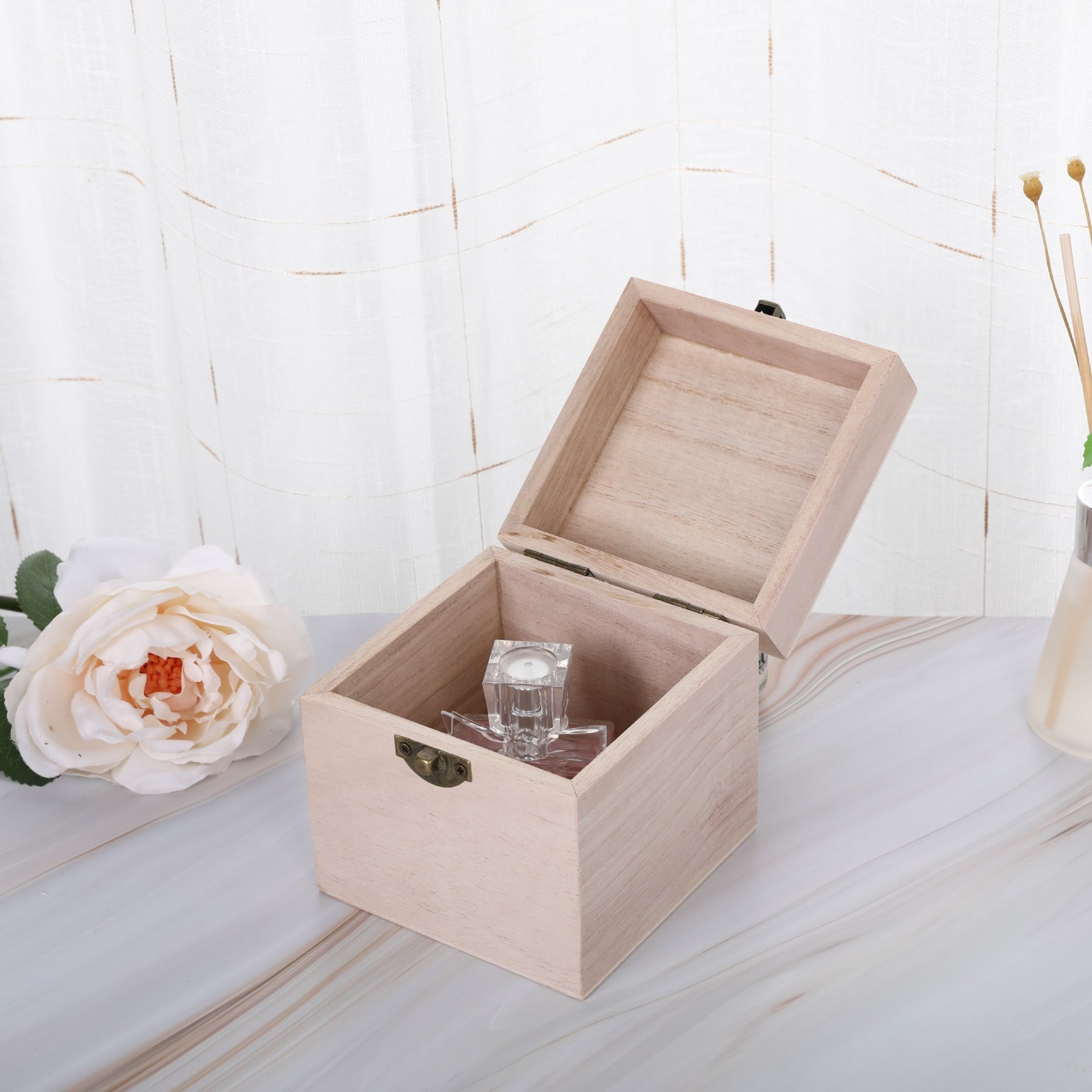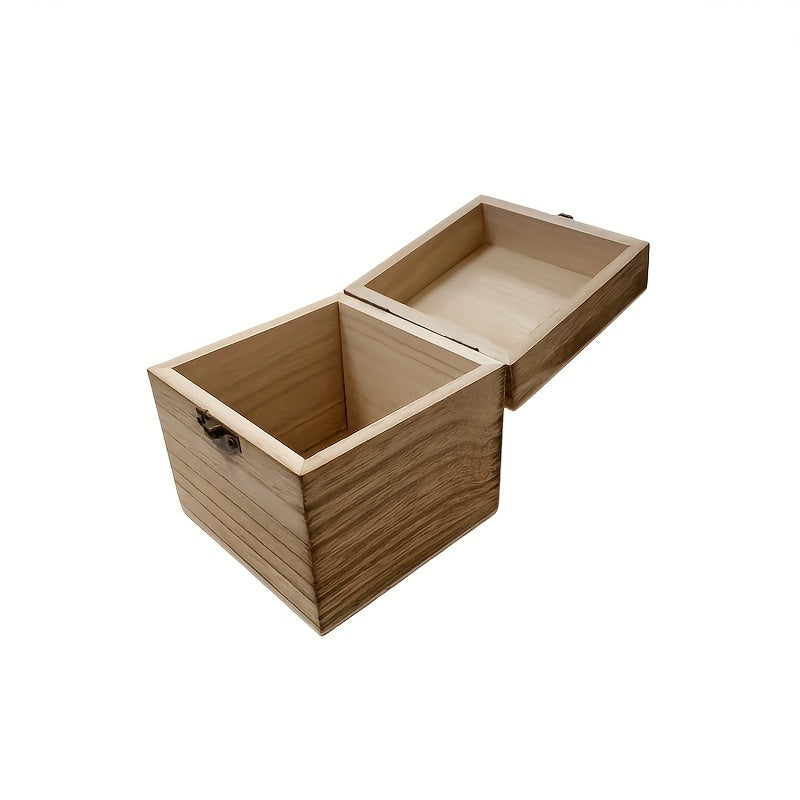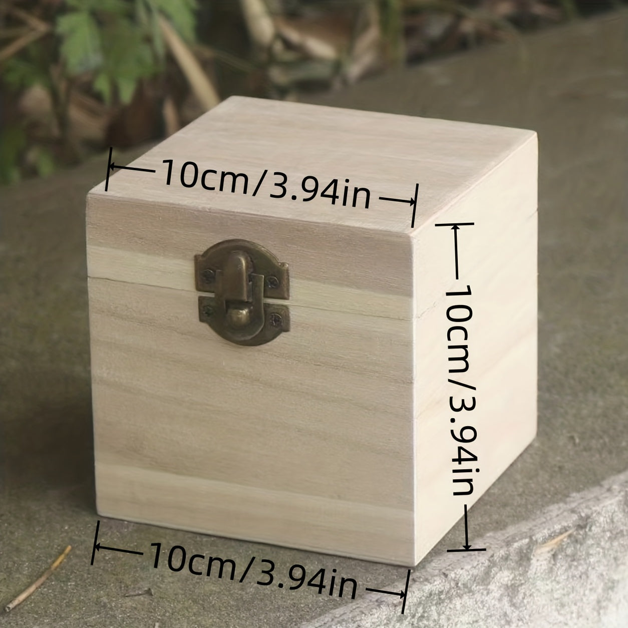 This wood box is perfect for arts, hobbies, and storage. It measures 10.01x10.01x10.01 cm, making it a versatile and handy container for your projects.