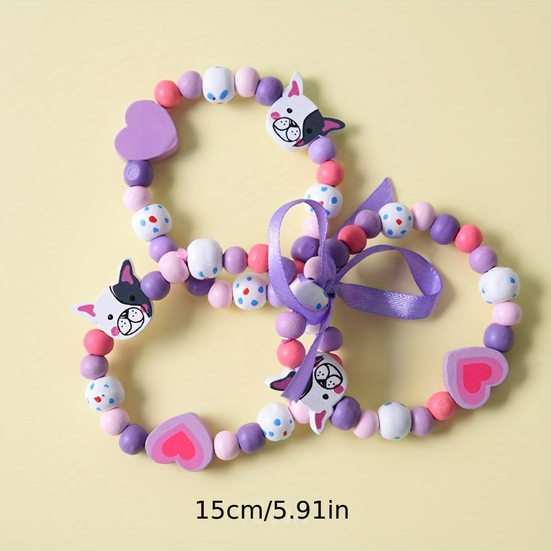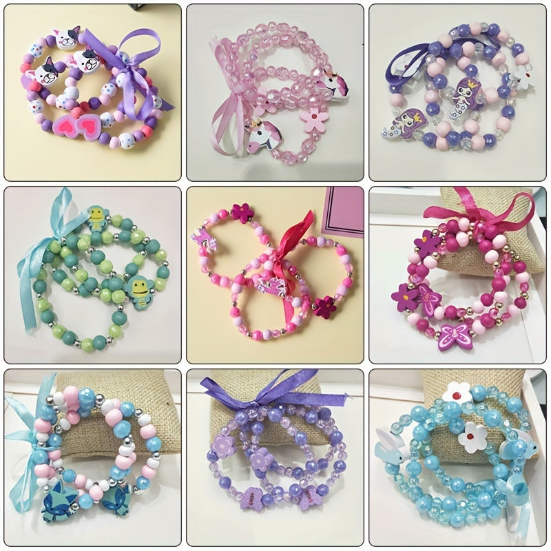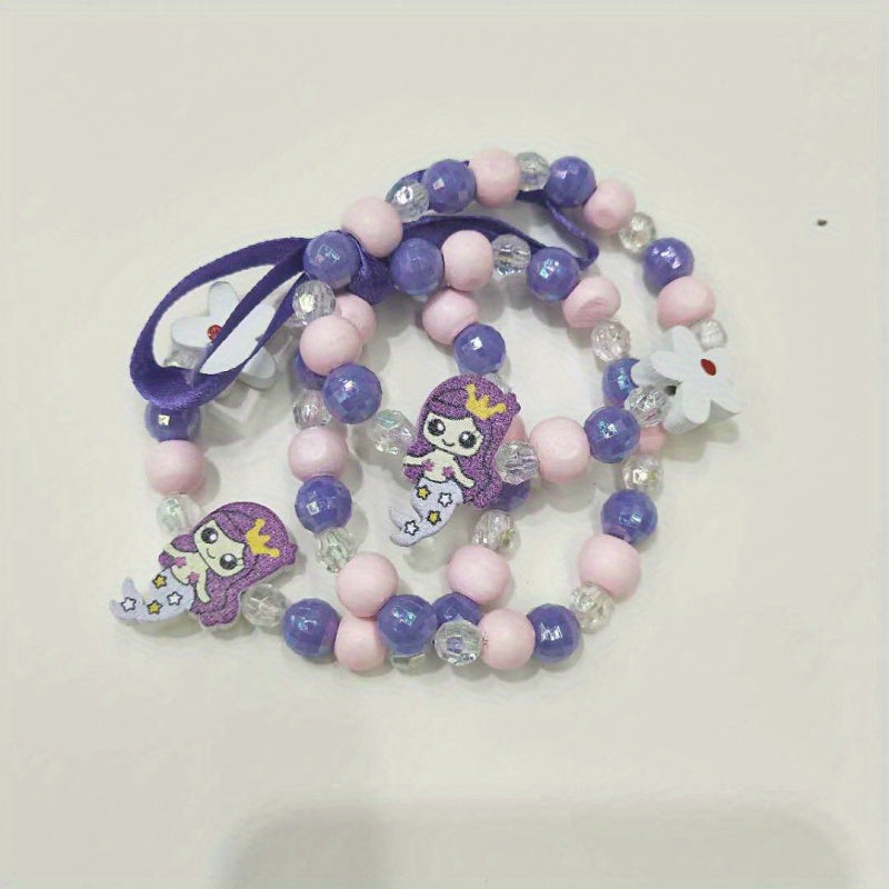This set includes 3 stylish bracelets featuring wooden and acrylic beads in various cartoon-inspired designs. Perfect for adding a fun touch to any outfit.