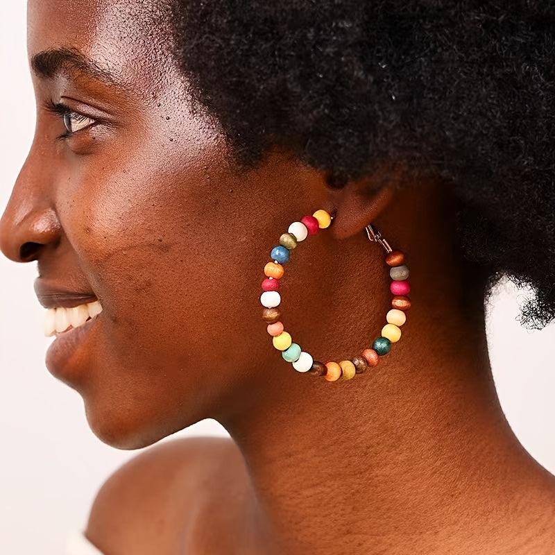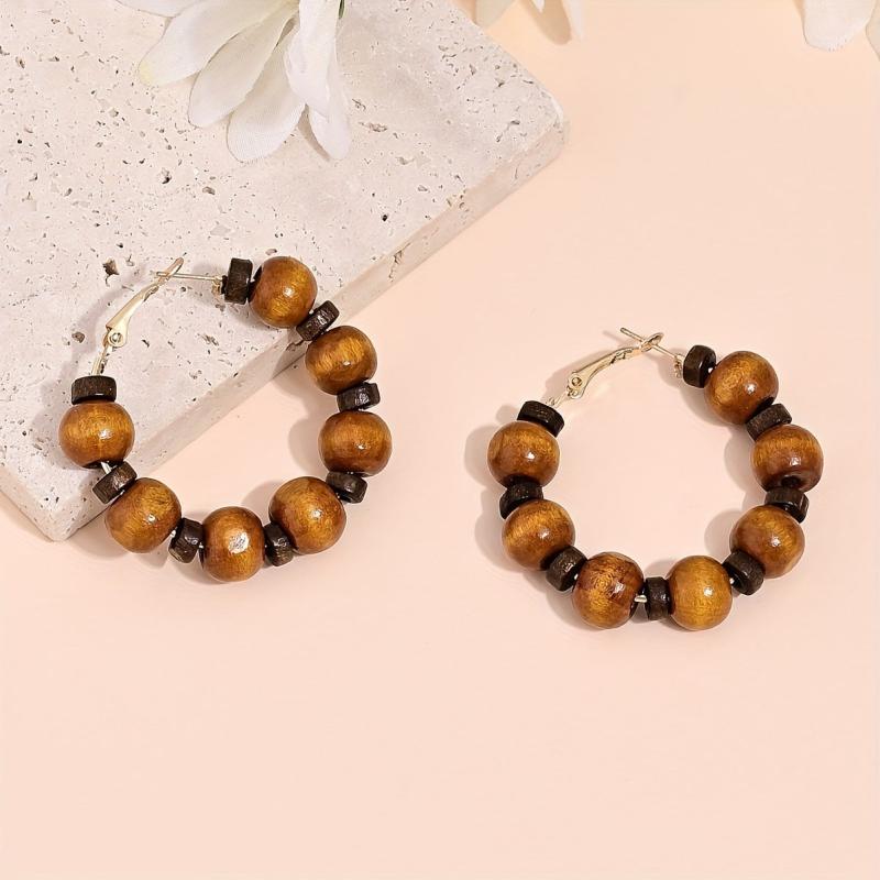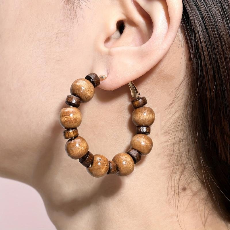 These wooden bead drop earrings are a fashionable addition to your daily casual or vacation outfits. Their vintage geometric design exudes a solid personality and bohemian charm.