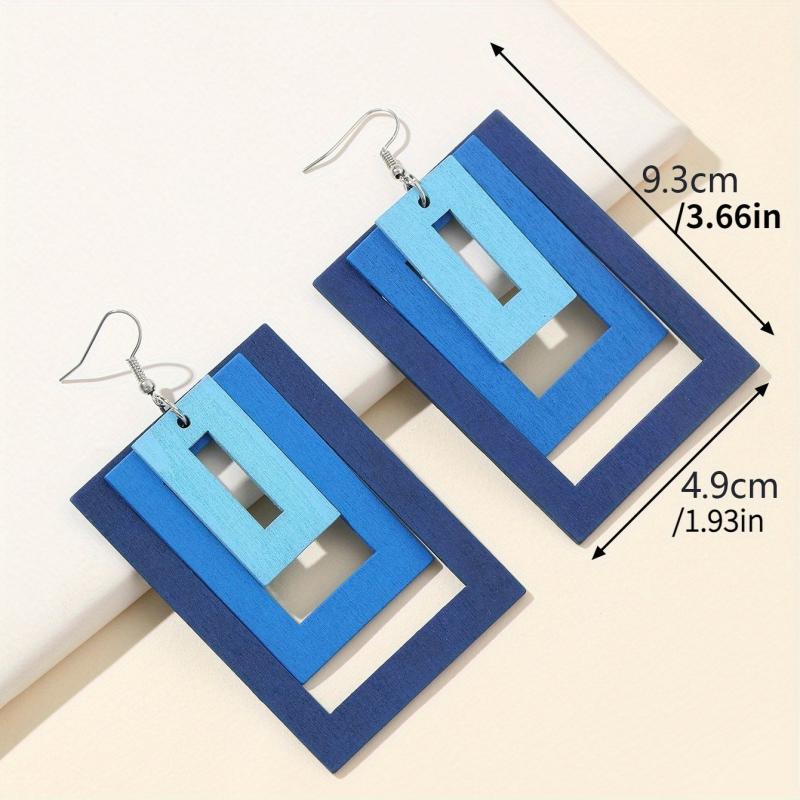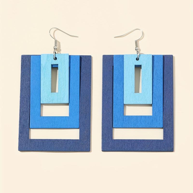 Add a touch of sophistication to your outfit with these quirky earrings. Perfect for daily wear or getaways, these earrings feature a unique wooden layer design with a gradient square pattern that exudes a trendy and sexy vibe.