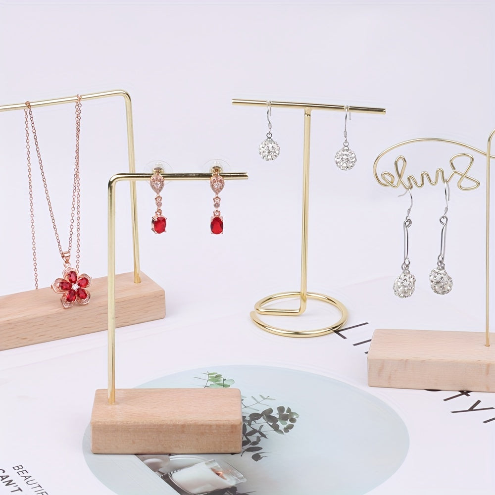 This versatile jewelry stand is perfect for organizing bracelets, earrings, and necklaces. It features a wood base and is a great decoration or photo prop.