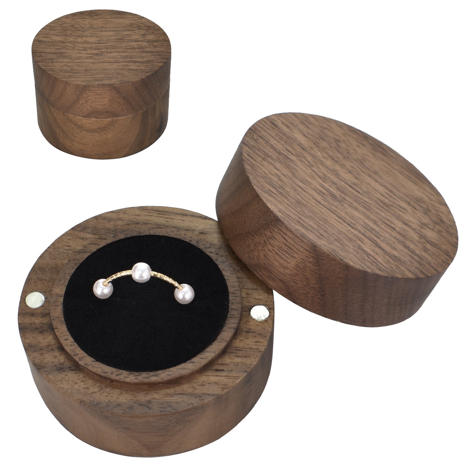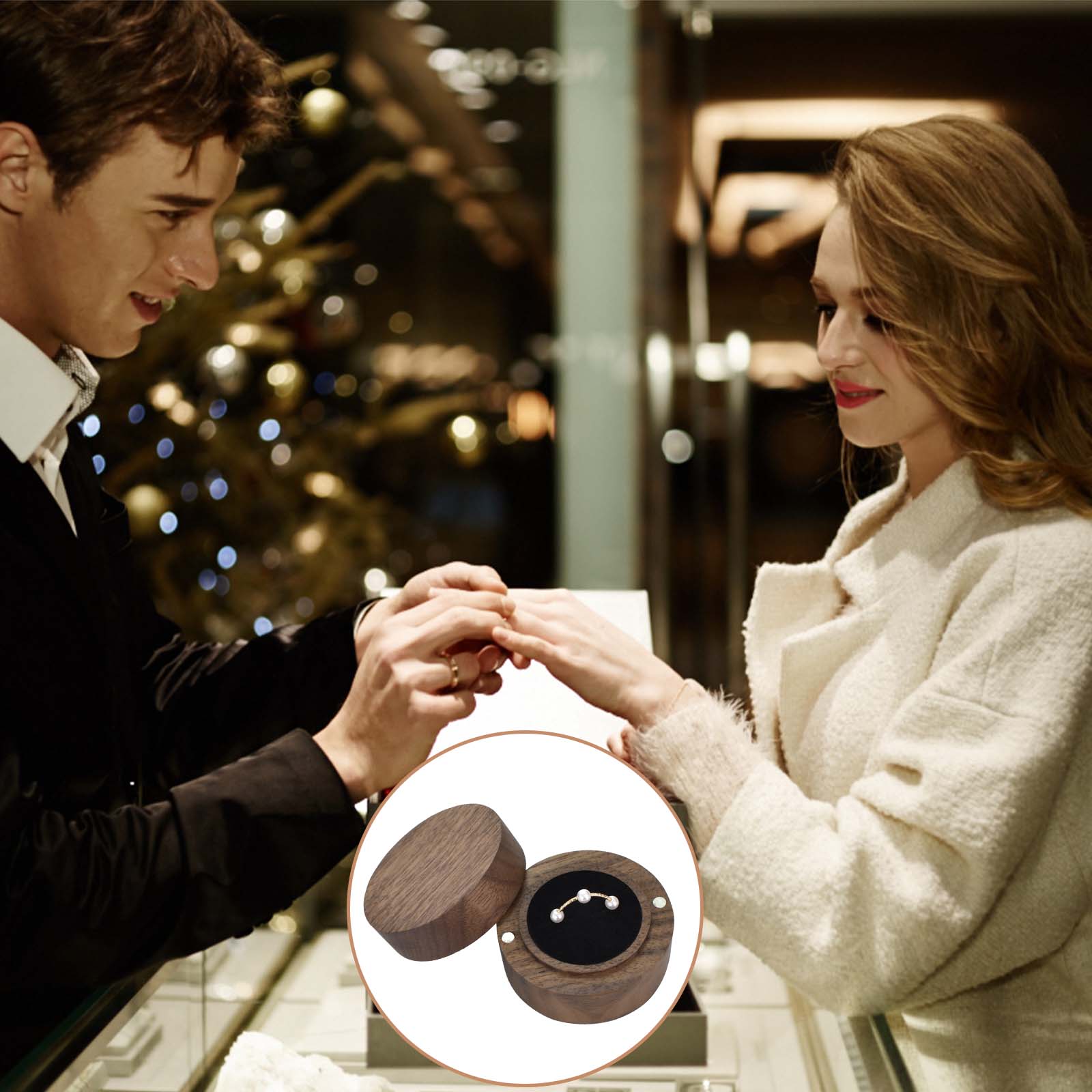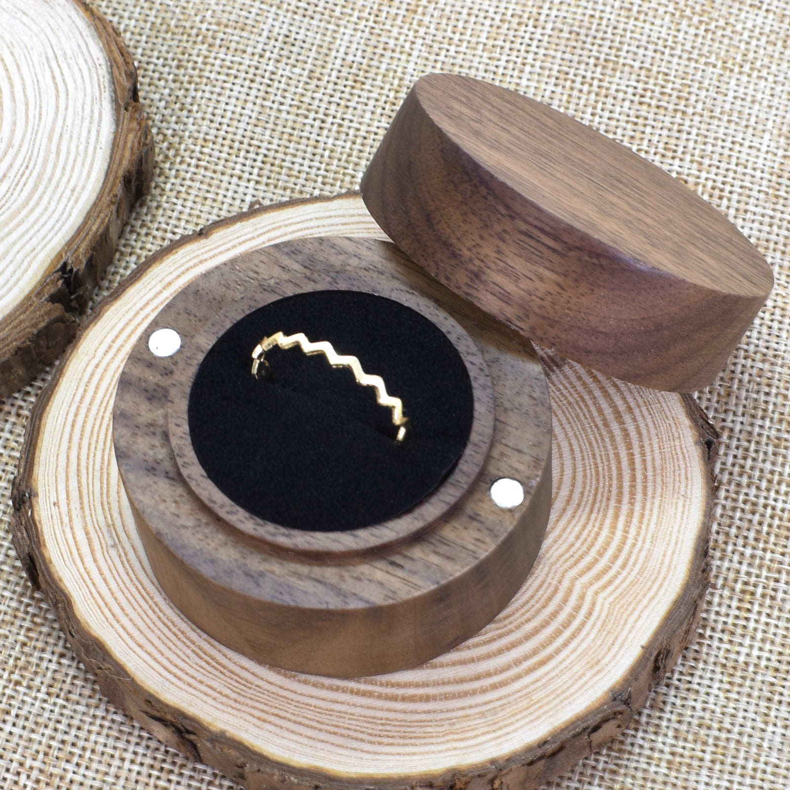 This elegant wooden ring box is perfect for holding your engagement ring or wedding rings. The beautiful walnut finish adds a touch of sophistication to your special moment.