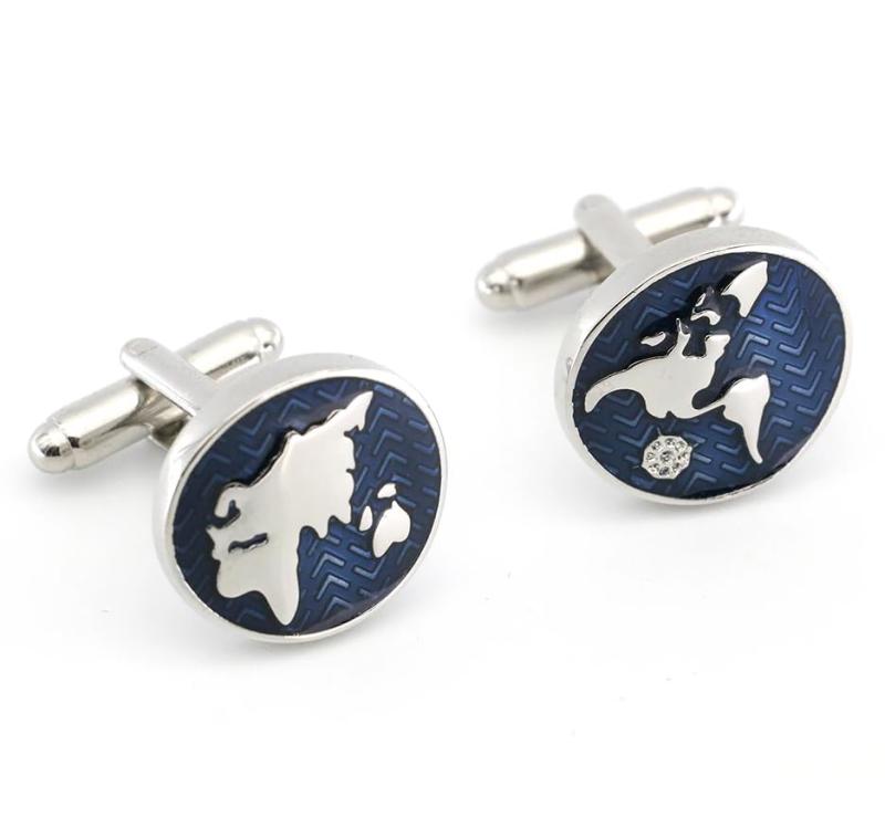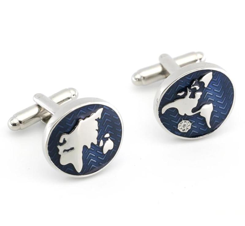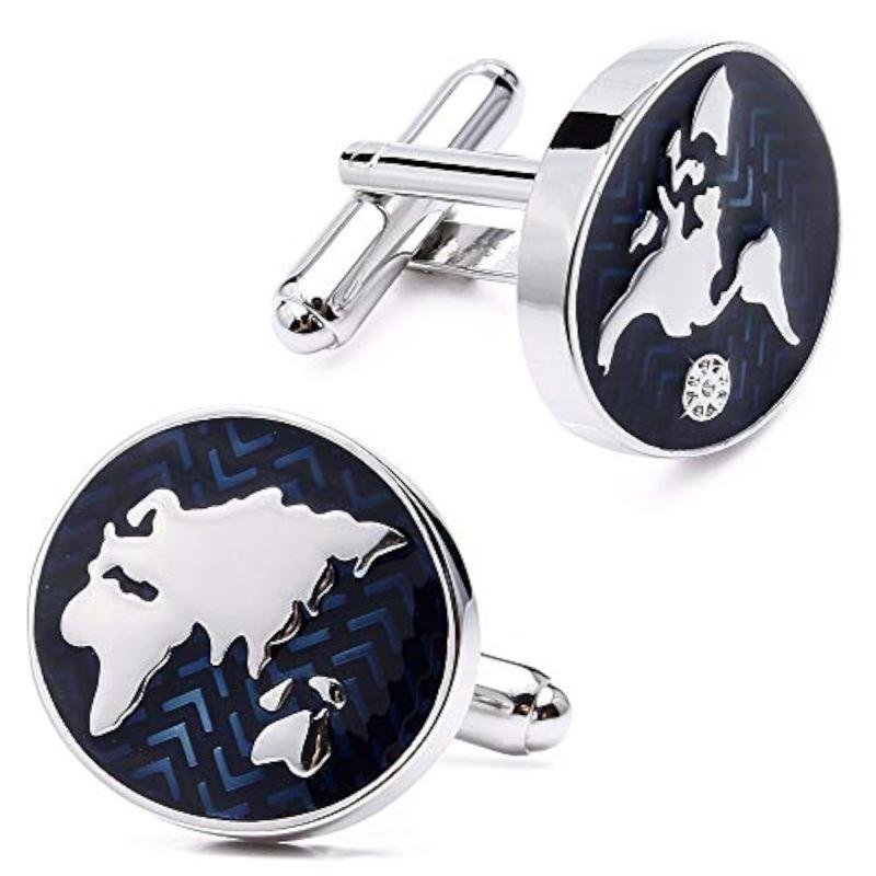 These stylish cufflinks feature a detailed world map design, perfect for men and boys.