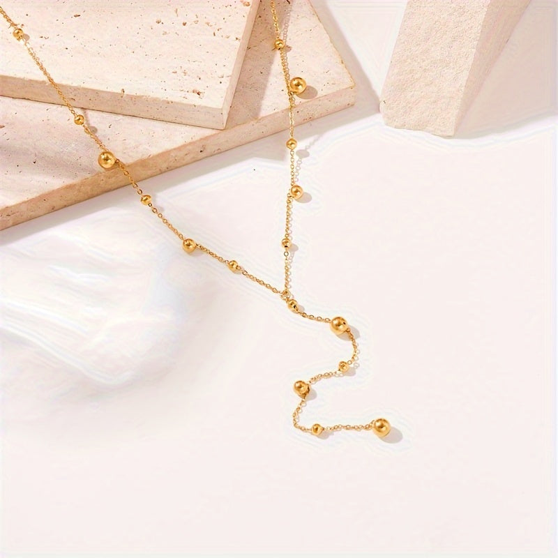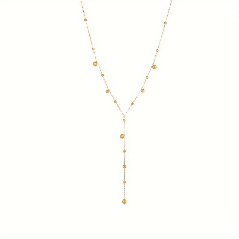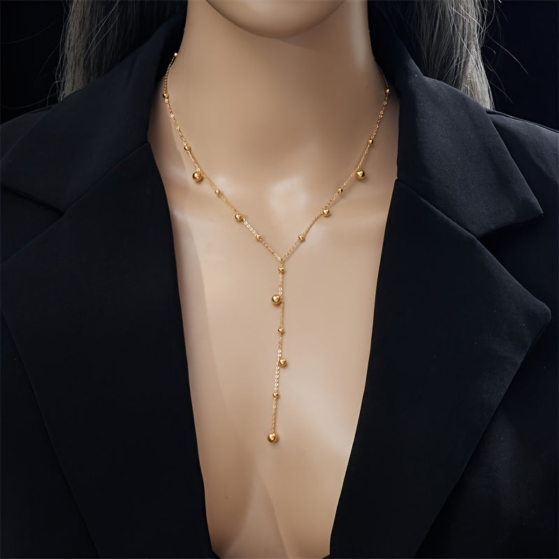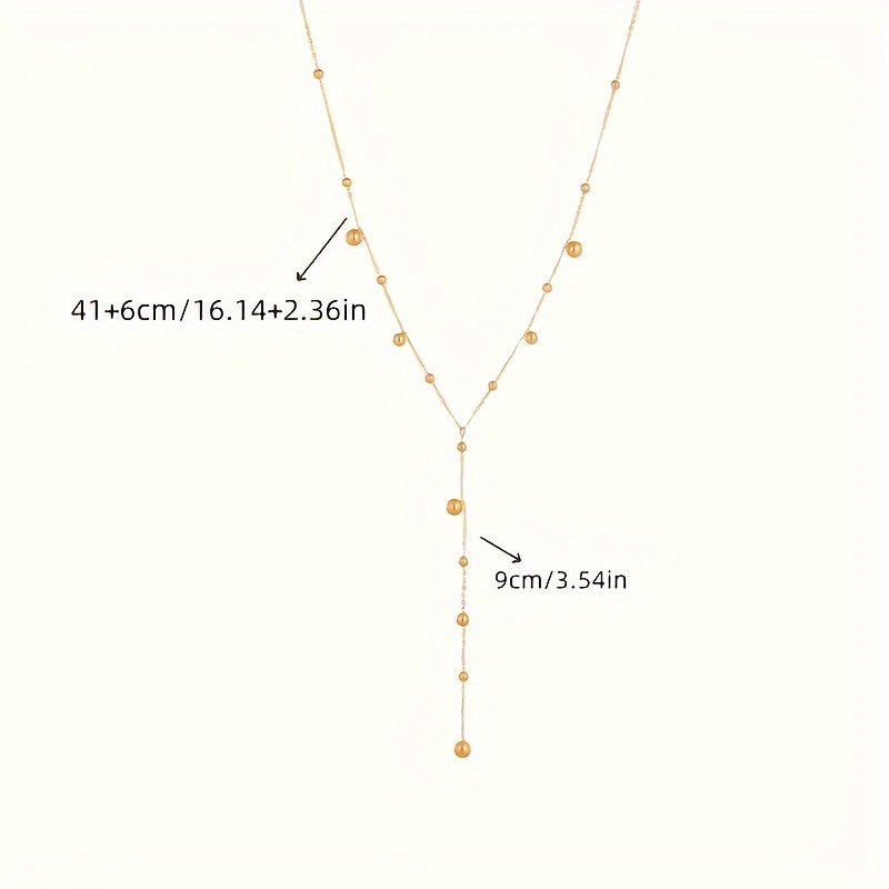 Elevate your style with this stunning Y-shaped stainless steel necklace adorned with round beads. Perfect for women to wear at sexy parties, banquets, or as a gift. Ideal for all seasons.