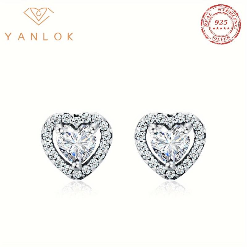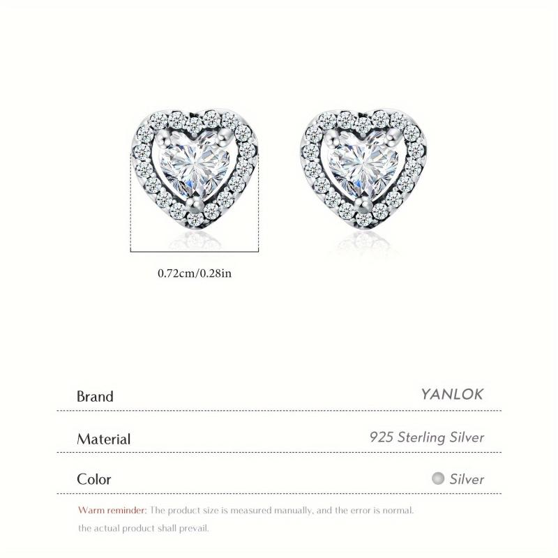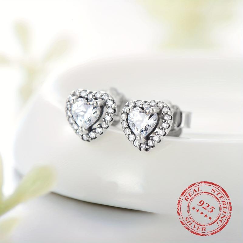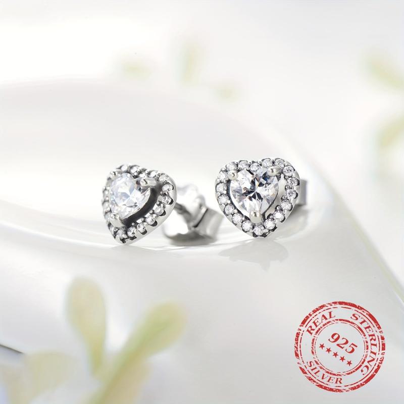 Elegant heart shaped stud earrings made of 925 sterling silver with synthetic zirconia. Perfect for parties, music events, or everyday wear.