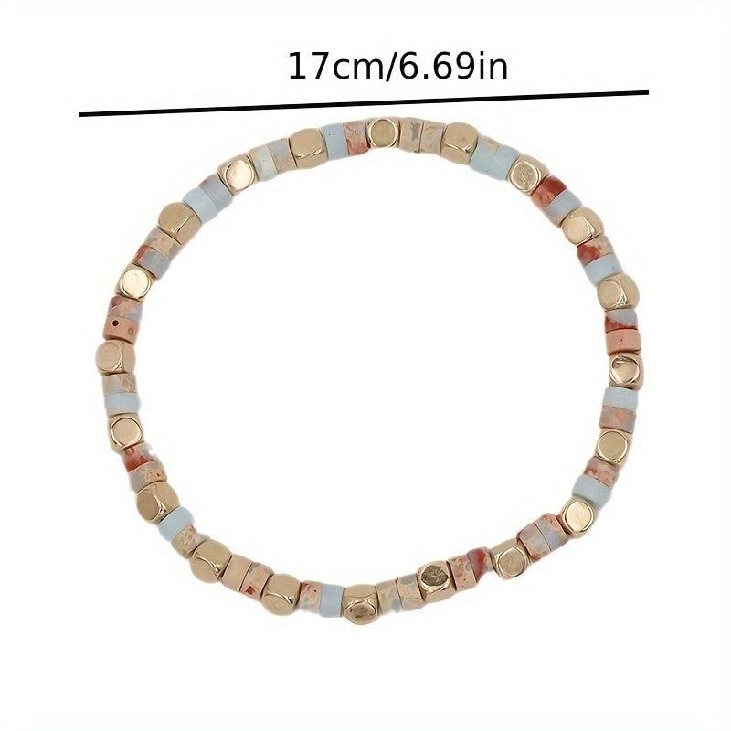 Elevate your style with this handcrafted beaded bracelet featuring vintage faux stone design. Perfect for daily wear or parties, this versatile accessory is suitable for all seasons.