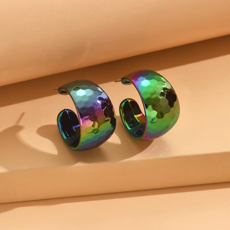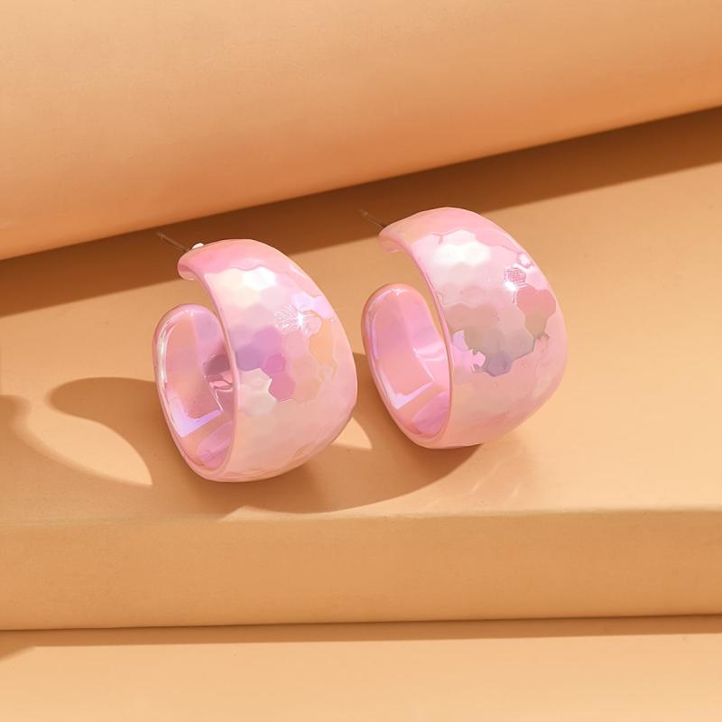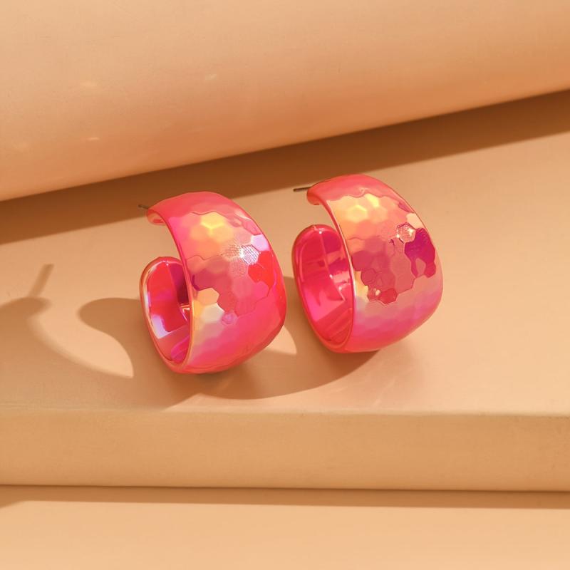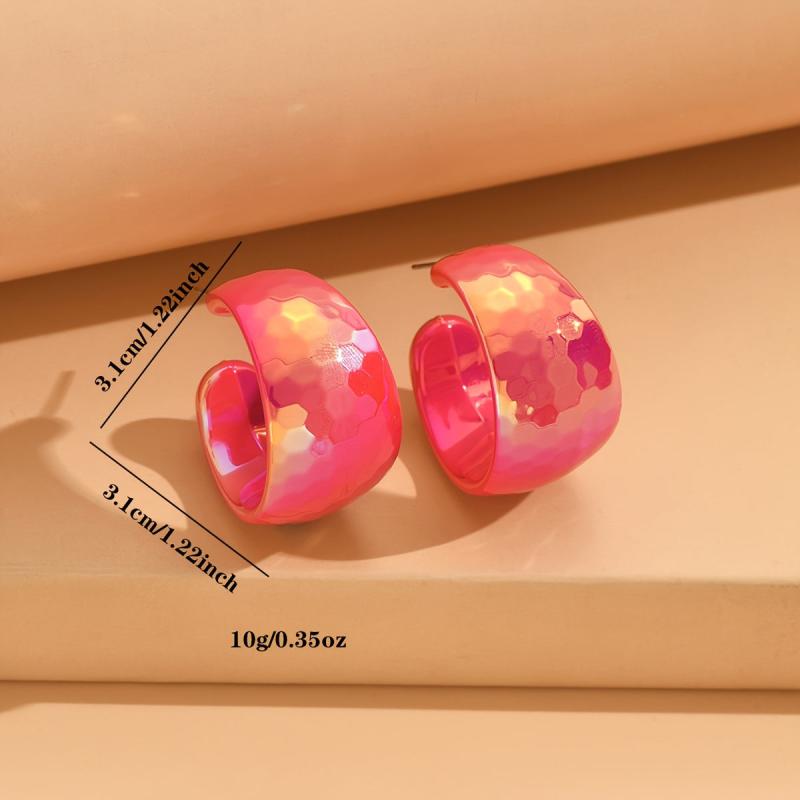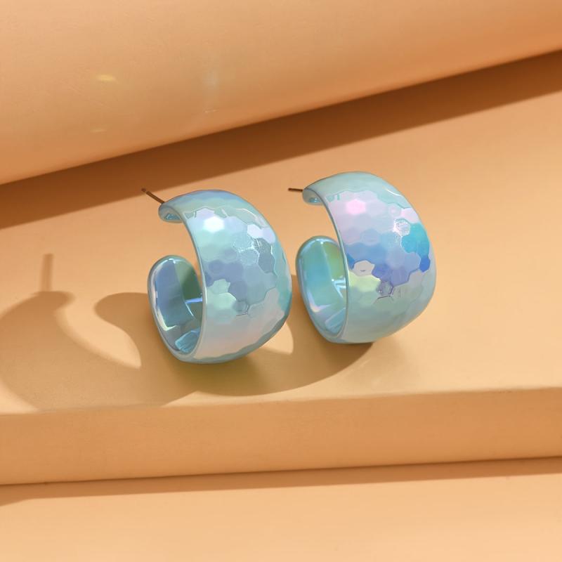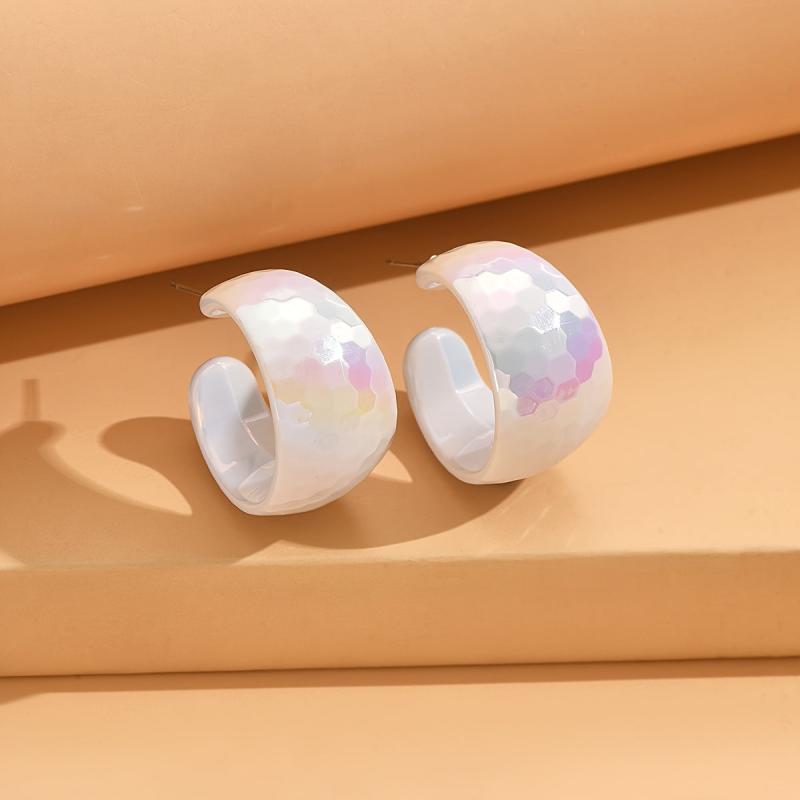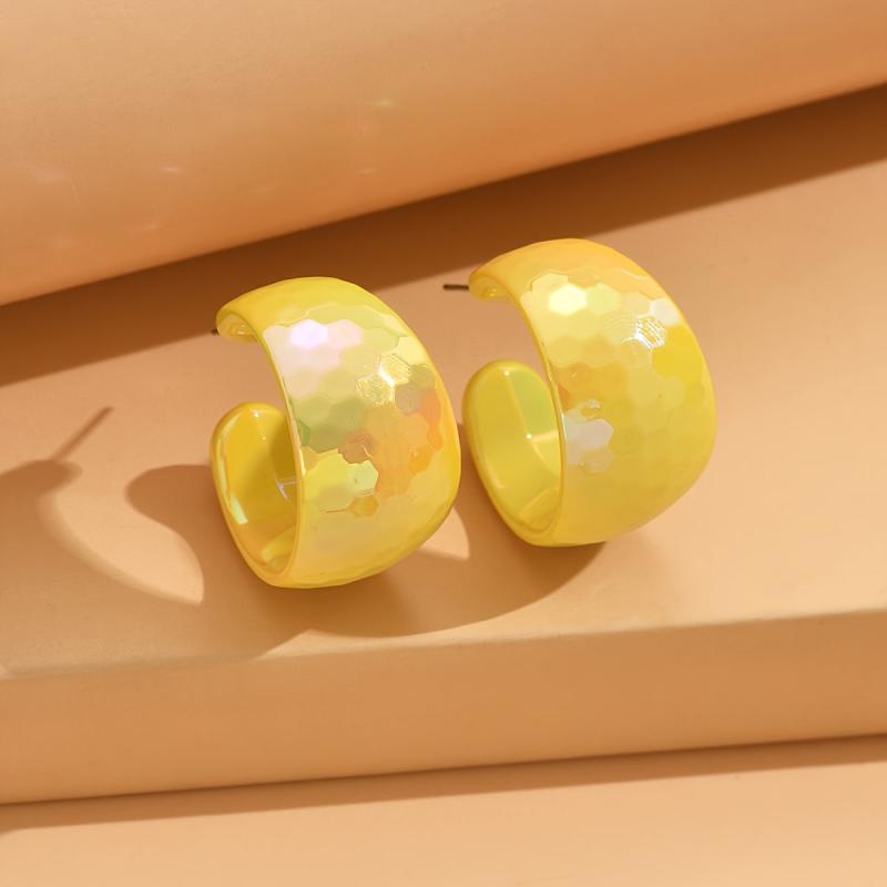 Add a pop of vibrant color to your outfit with these yellow acrylic hoop earrings. Their glossy marbled texture and lightweight design make them perfect for parties and gifting. Bring a touch of retro flair to any look with these playful iridescent earrings.