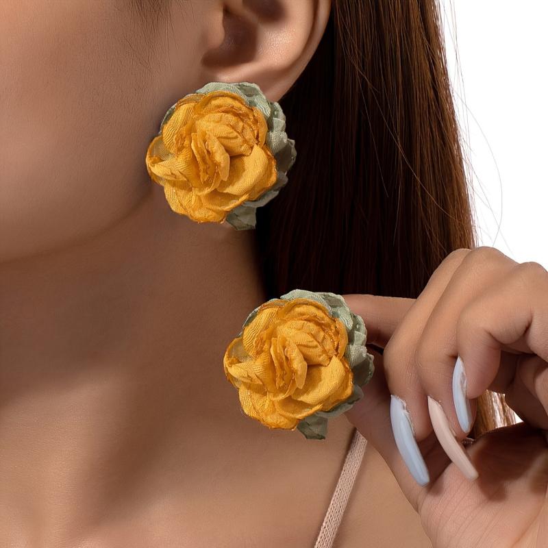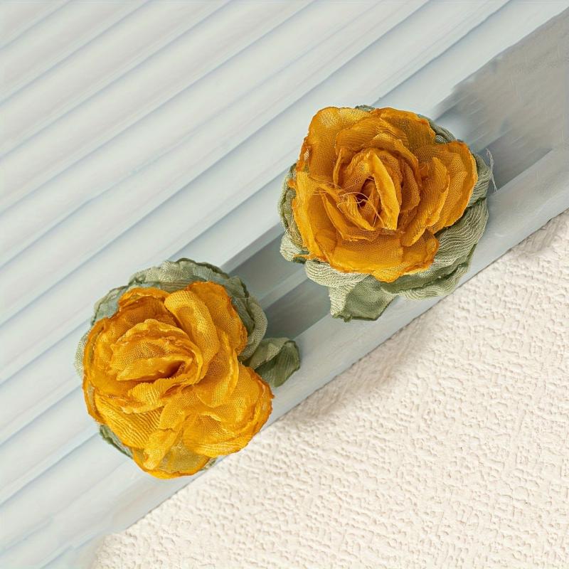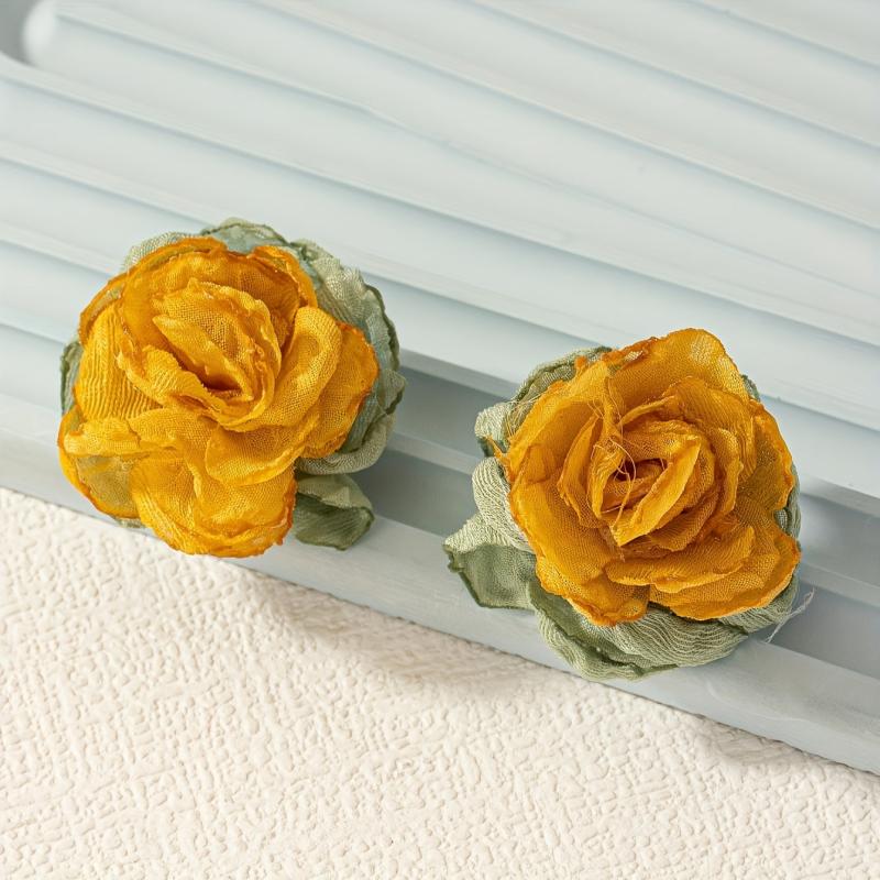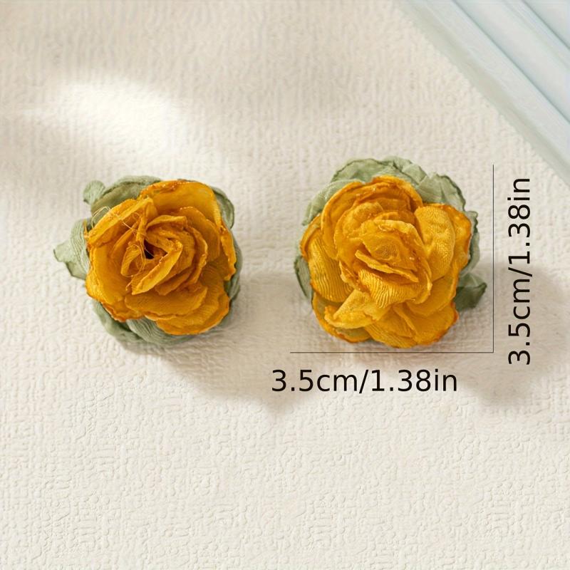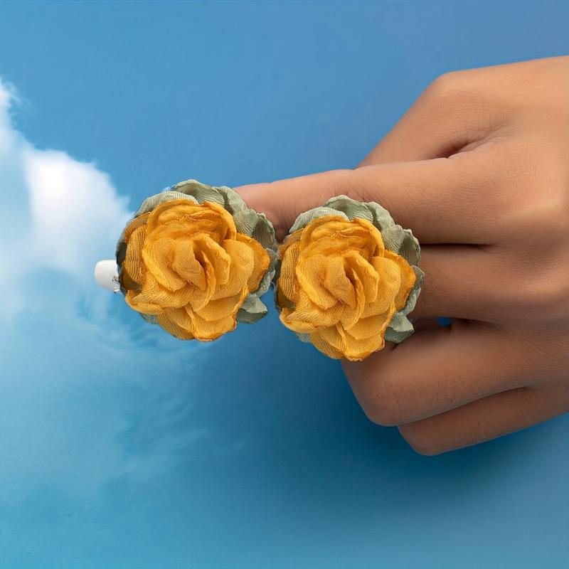 Enhance your outfit with these stunning yellow fabric flower earrings that are perfect for daily wear or special occasions.