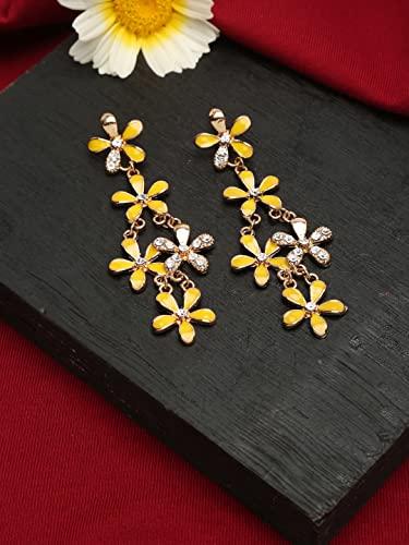Elegant yellow plated earrings designed for women to add a touch of glamour to any outfit.