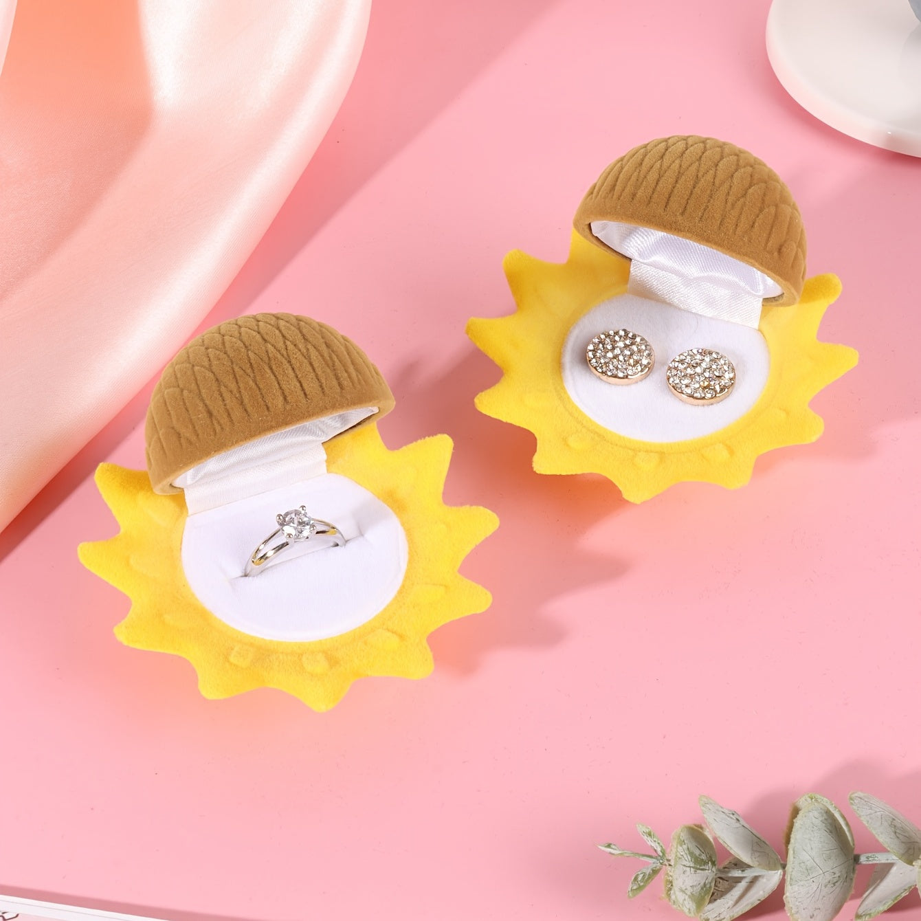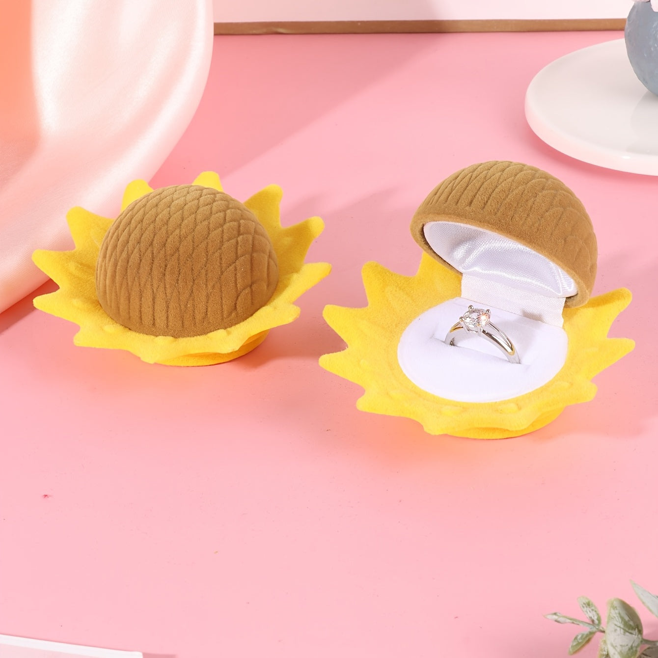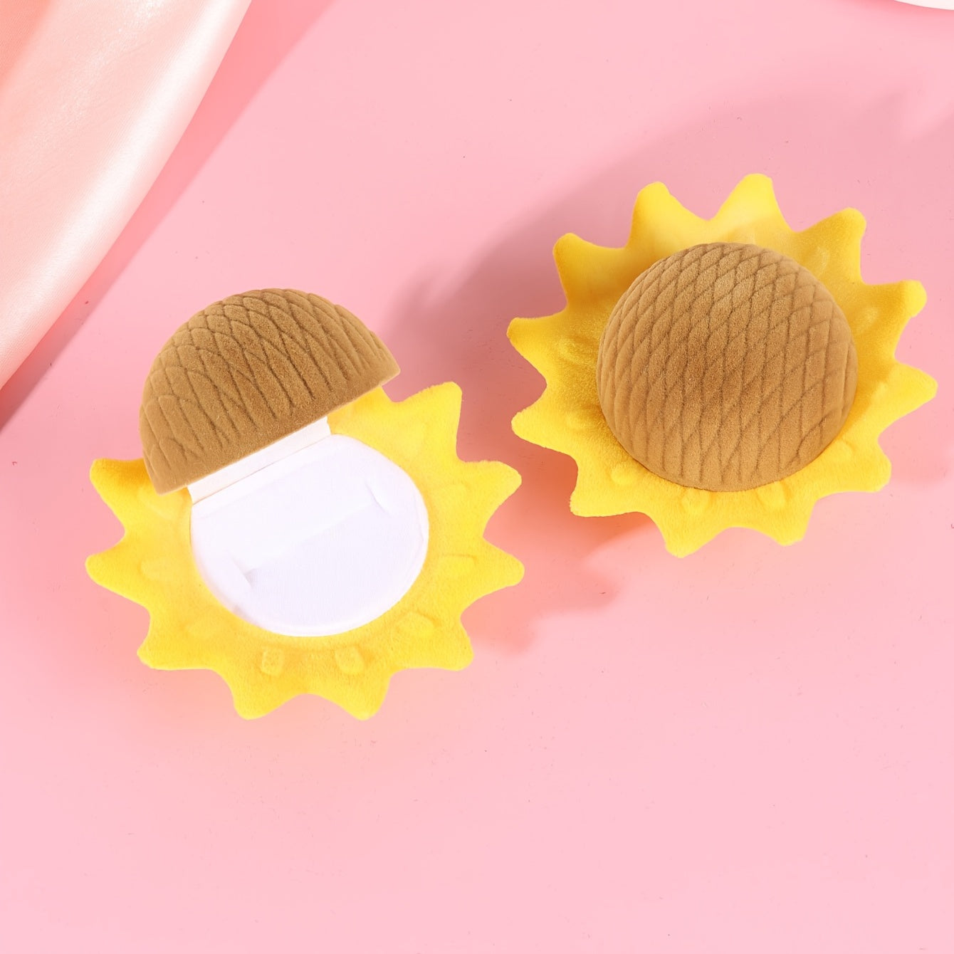 This adorable sunflower velvet ring box is perfect for both rings and earrings. Its cartoon design adds a fun touch to your jewelry storage.