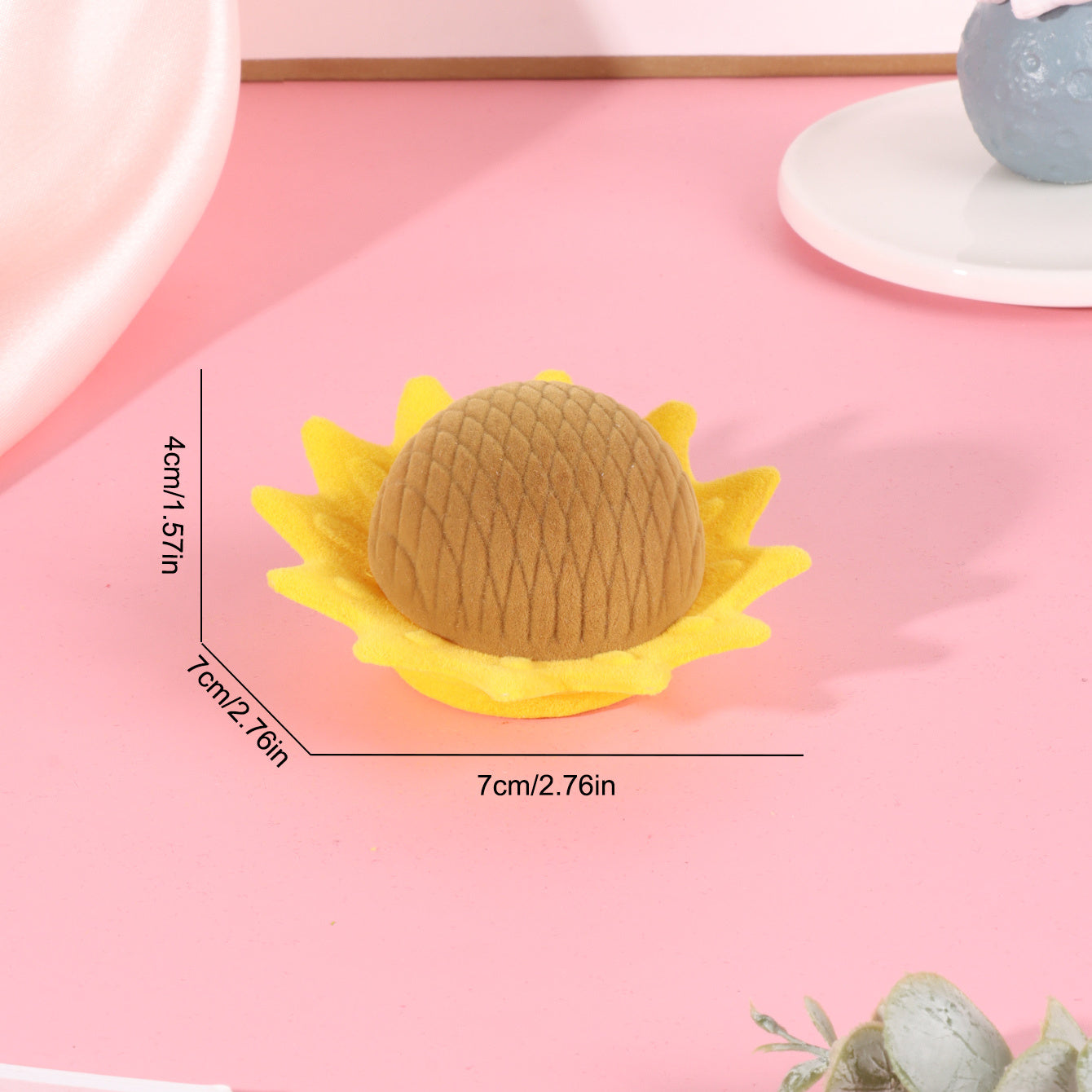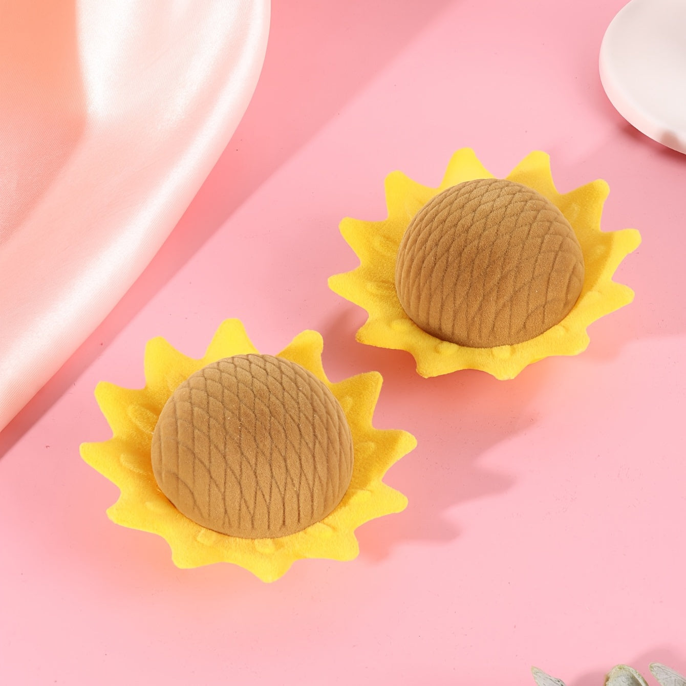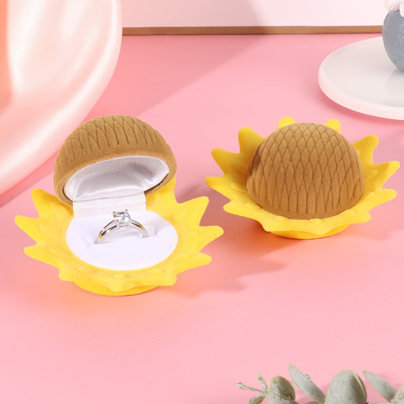 This adorable sunflower velvet ring box is perfect for both rings and earrings. Its cartoon design adds a fun touch to your jewelry storage.