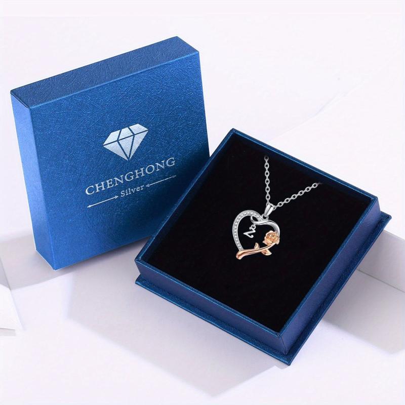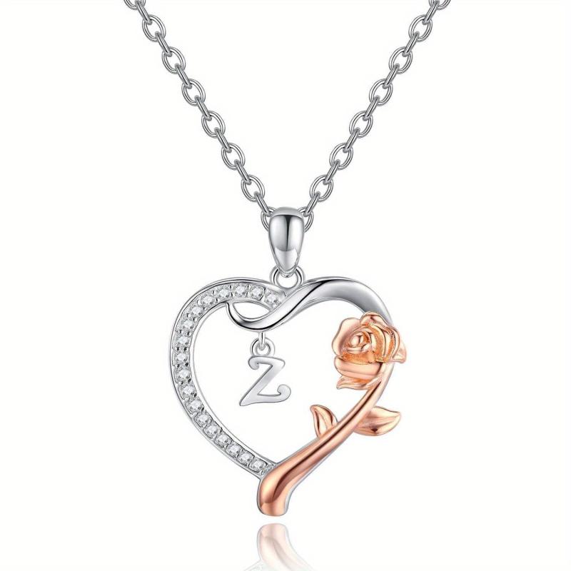 This beautiful sterling silver initial necklace features an alphabet pendant with a rose and heart design. It makes for a perfect personalized jewelry gift for women on any occasion.