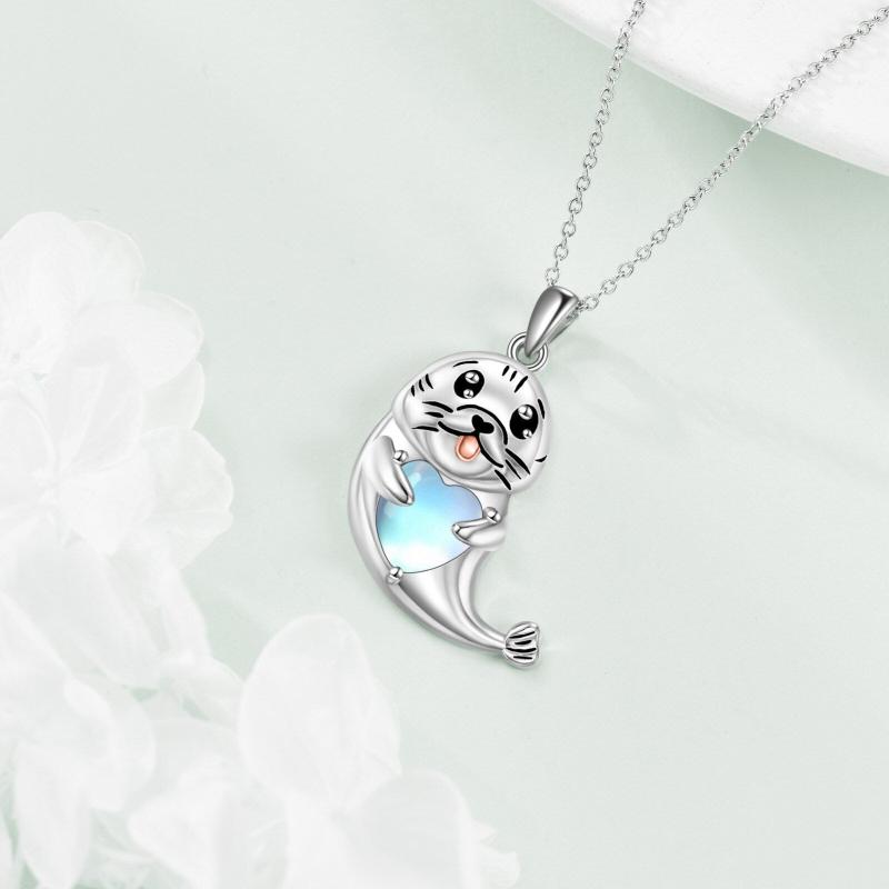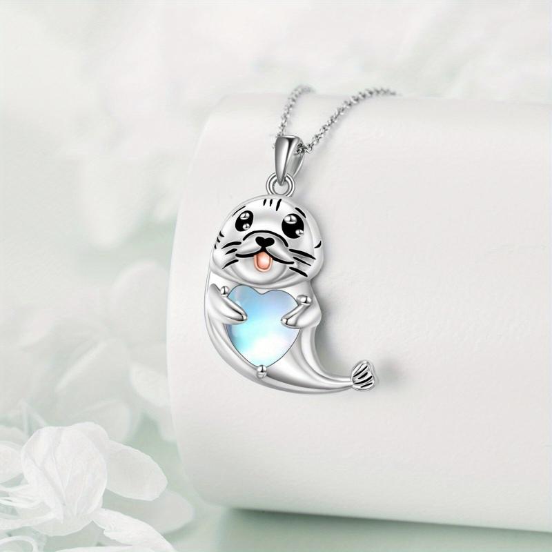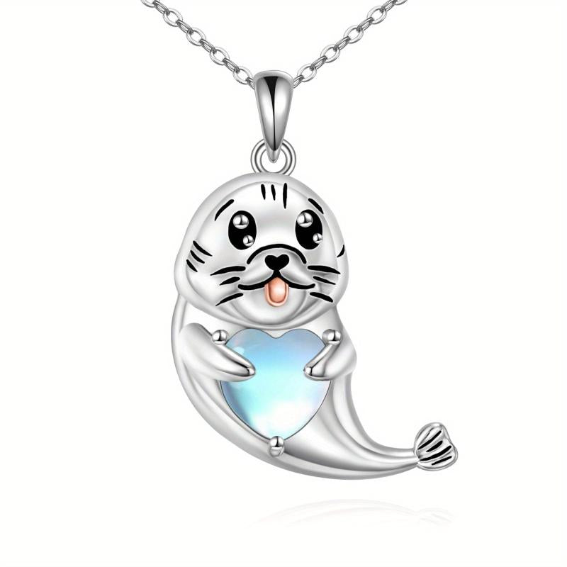 Adorn yourself with this charming YFN Manatee Moonstone Necklace crafted in 925 sterling silver. The manatee pendant adds a touch of nature-inspired elegance to your look.