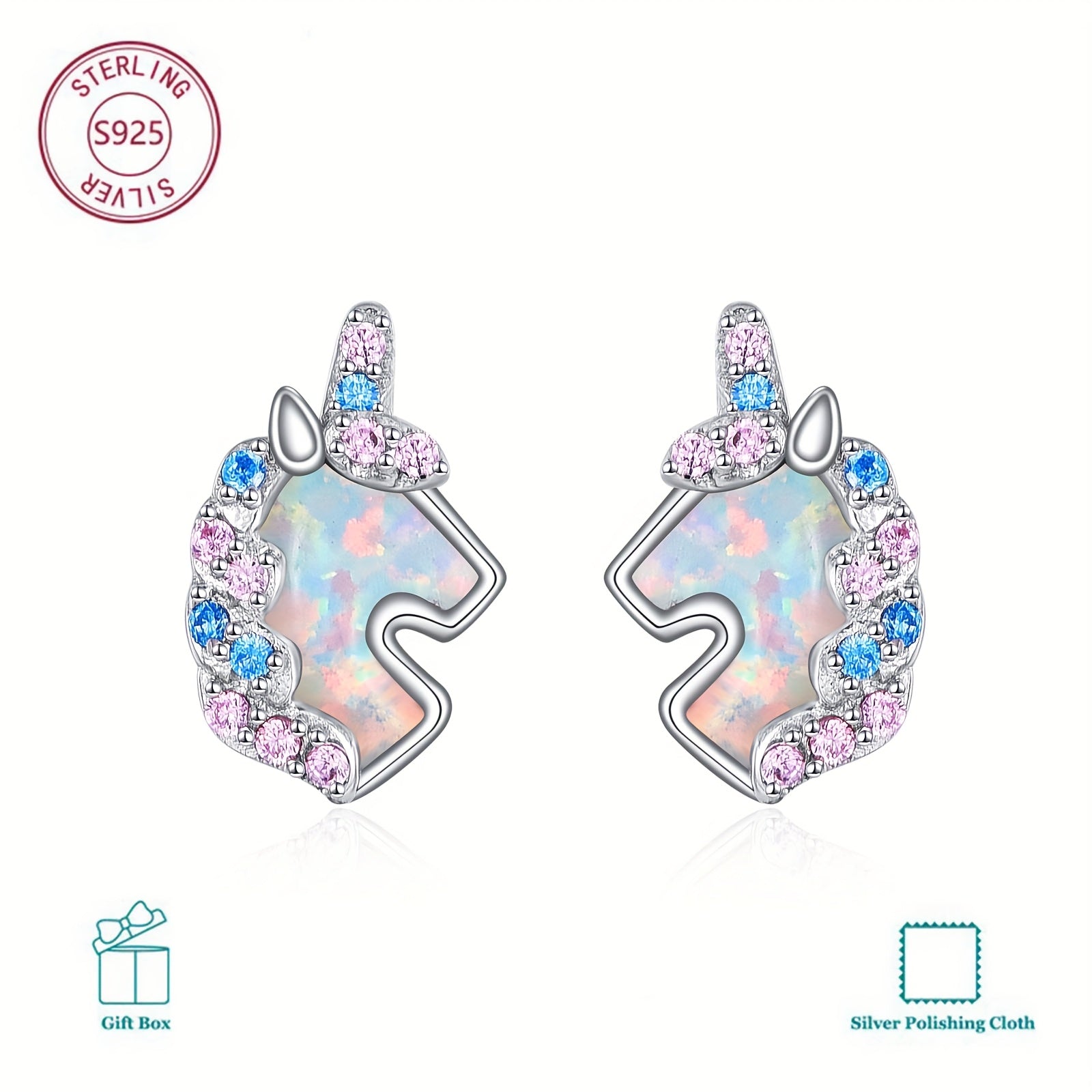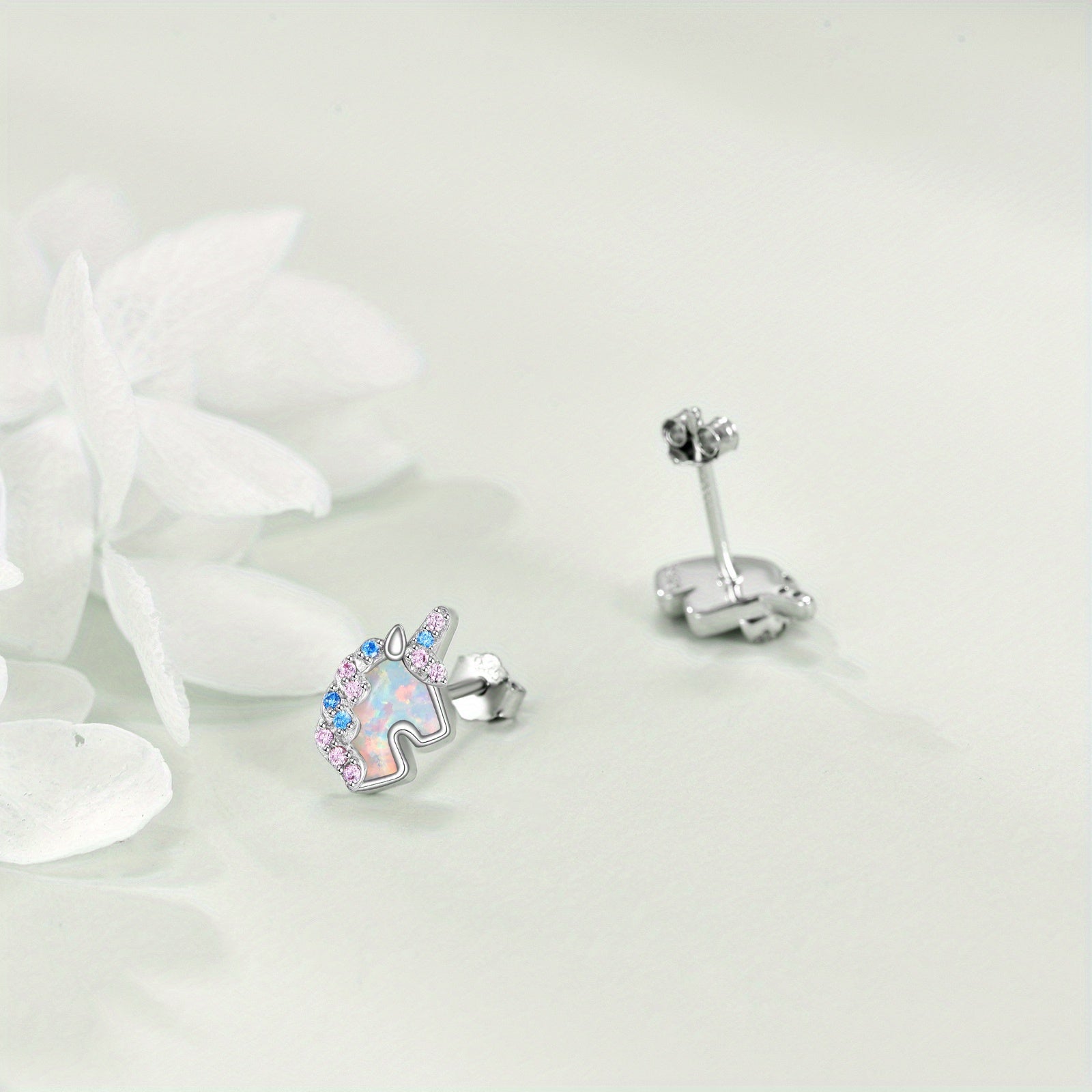 Adorn your ears with these charming unicorn stud earrings made of sterling silver. Perfect for women and girls who love unique animal-themed jewelry.