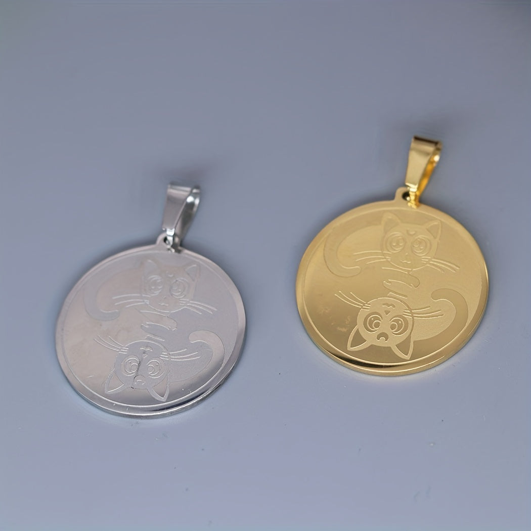 • Stainless steel round pendant necklace with Yin Yang cats design
