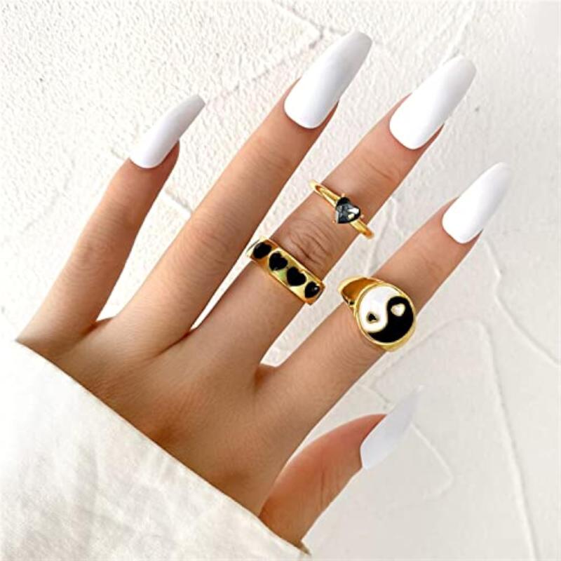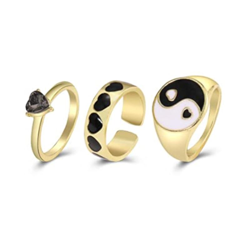 This set of 3 stackable rings features a stylish Yin-Yang design plated in silver. Mix and match them to create your own unique look.