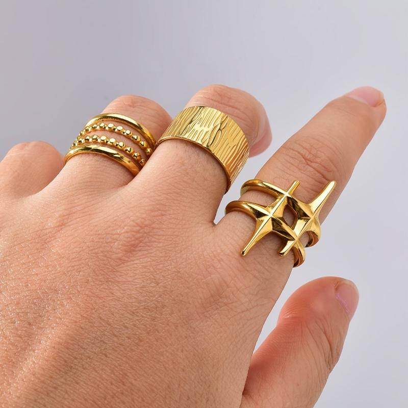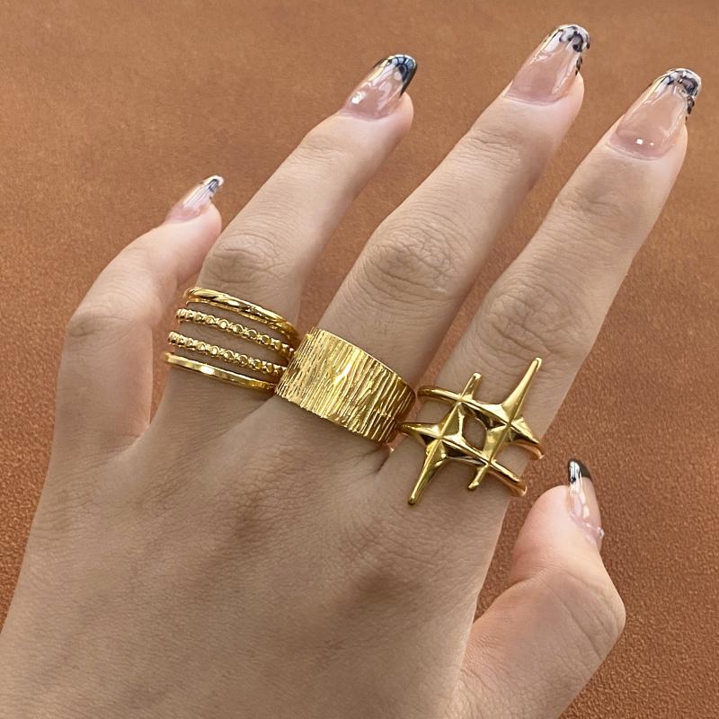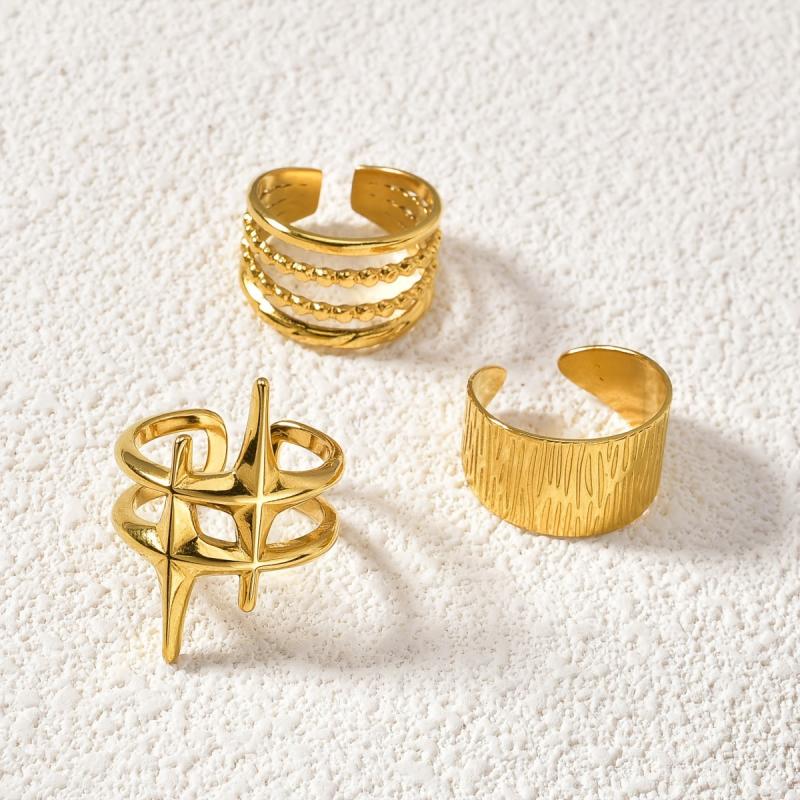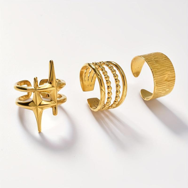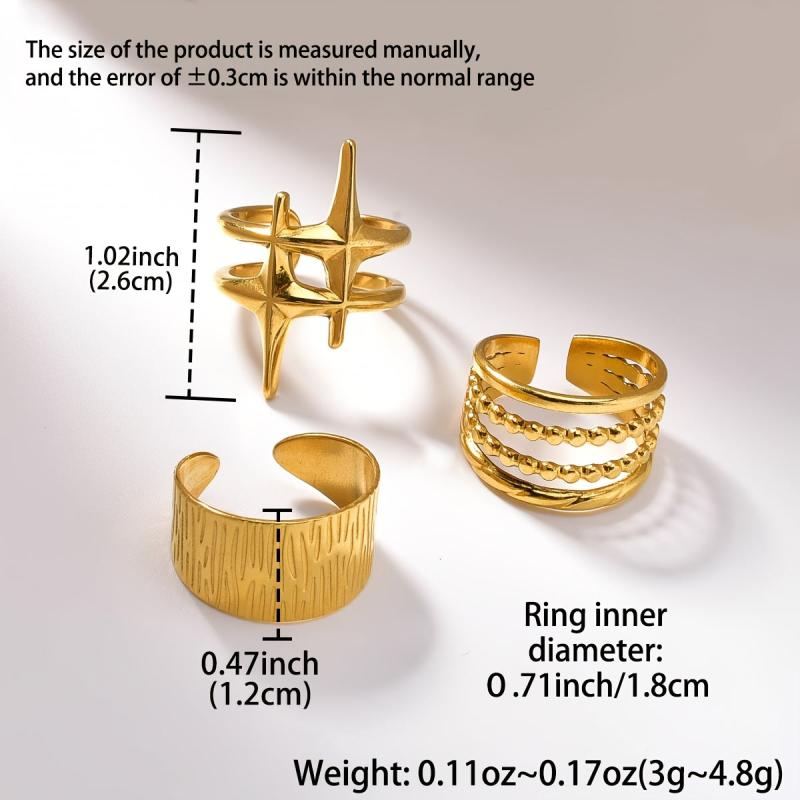 Elevate your style with this set of 3 stainless steel stack rings featuring vertical stripe and dot patterns. Crafted with high-quality materials, these rings are durable and stylish for everyday wear.