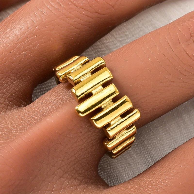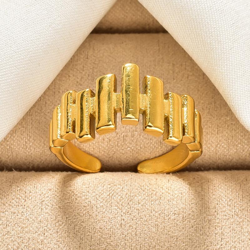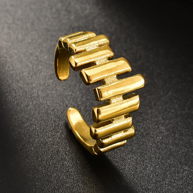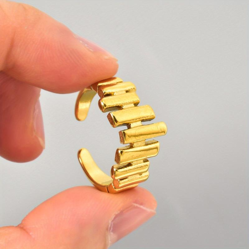 Make a fashion statement with this bold geometric open ring in a golden tone. Ideal for men and women, perfect for daily wear, parties, and summer.