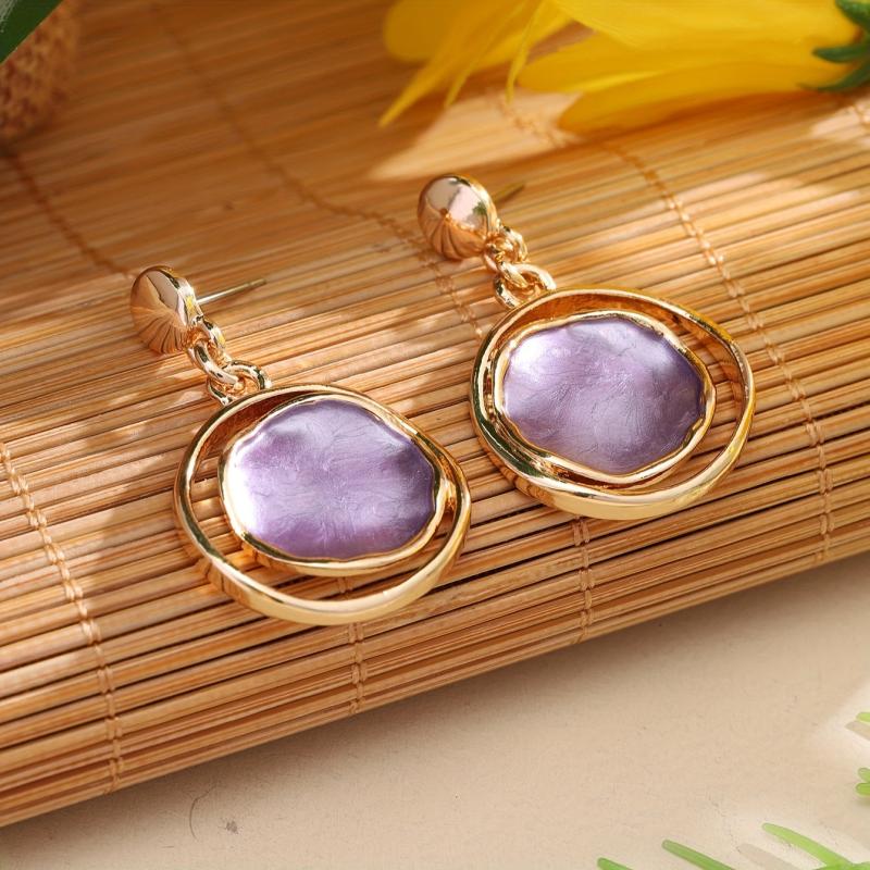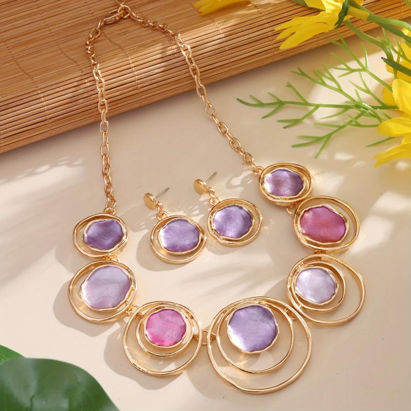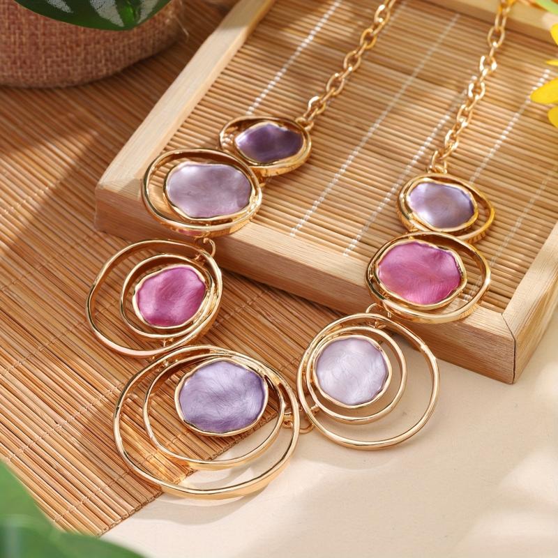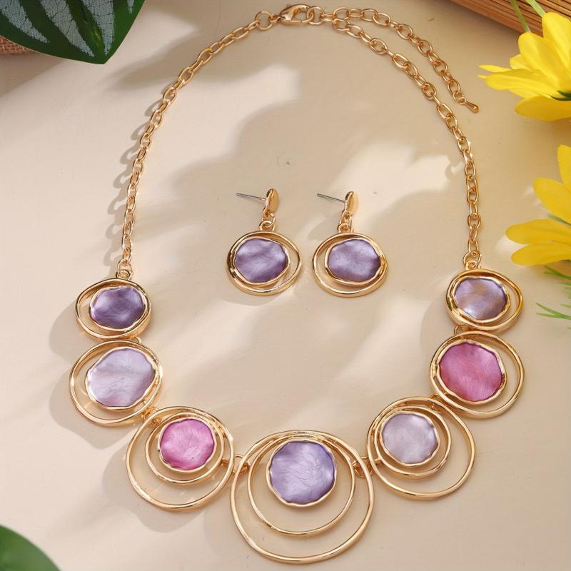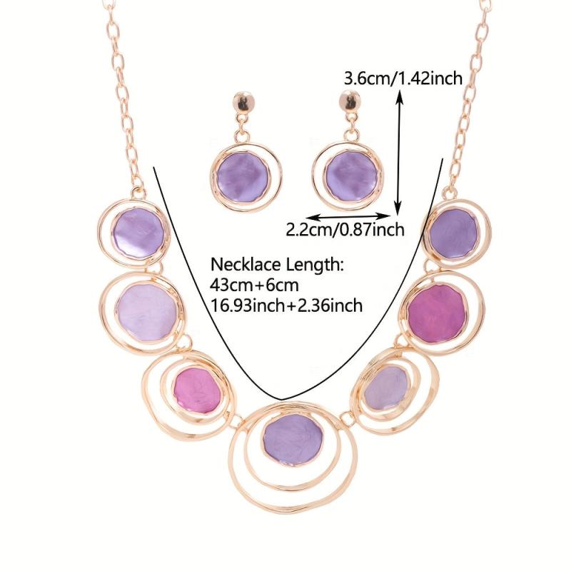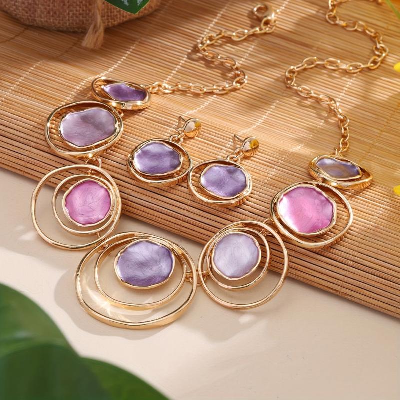Elevate your style with this stunning Zinc Alloy jewelry set. Perfect for daily wear, parties, or prom, this set features a geometric round design with a purple drip accent. A perfect golden gift for any occasion.