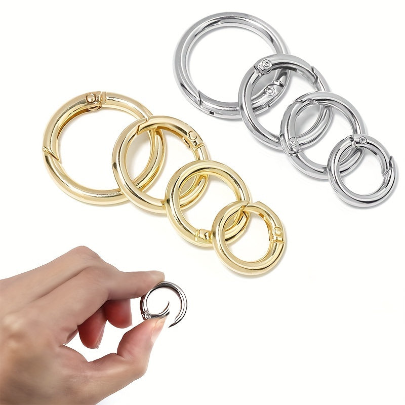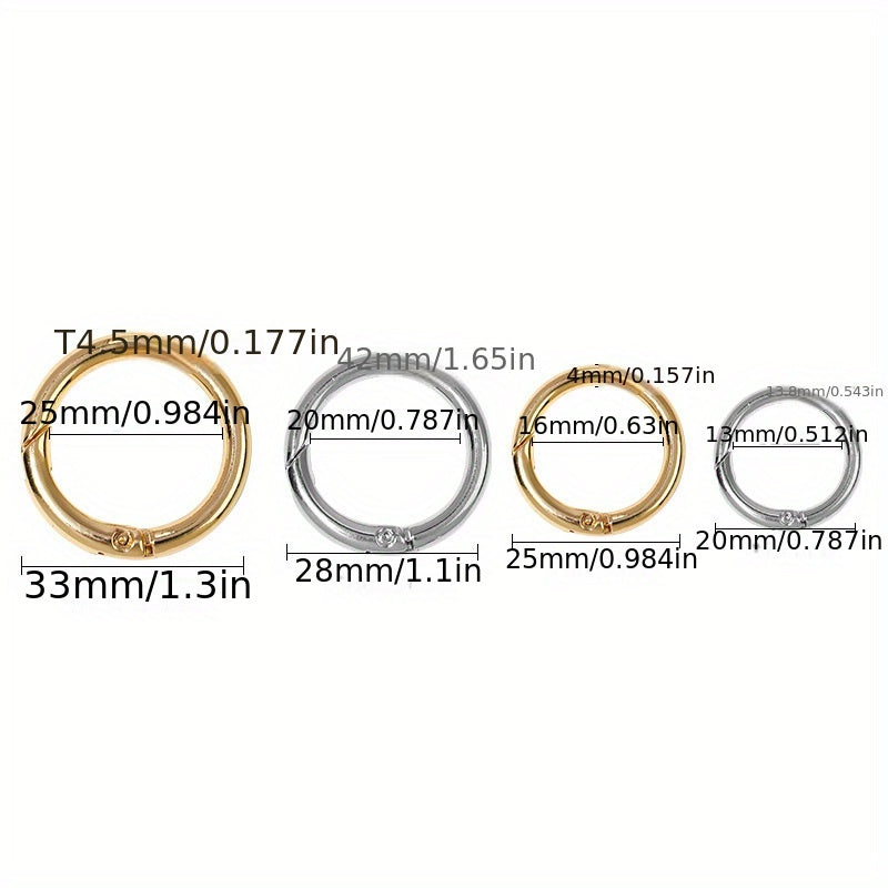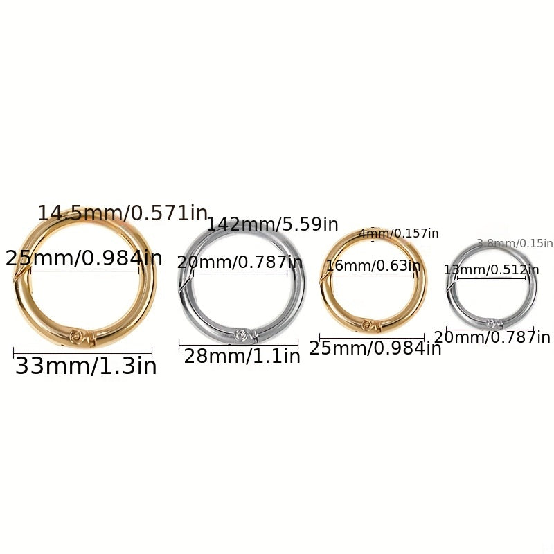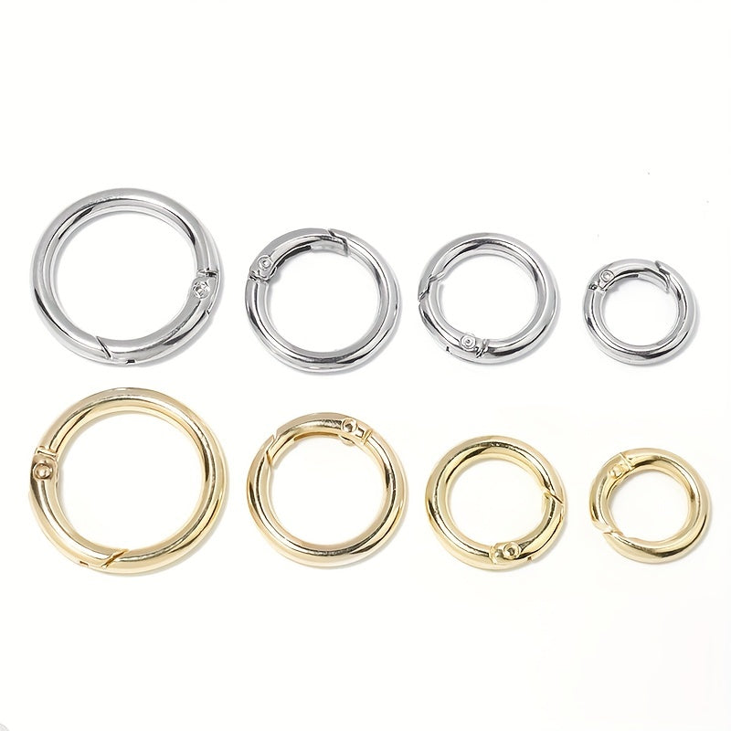 This silvery golden spring clasp is perfect for luggage, keys, and more. Made of durable zinc alloy. Features a convenient opening ring.