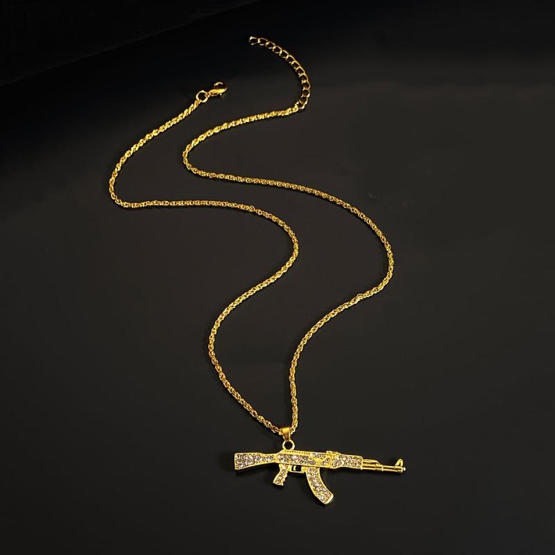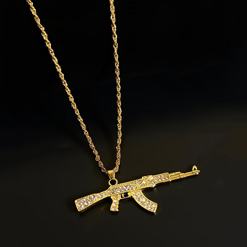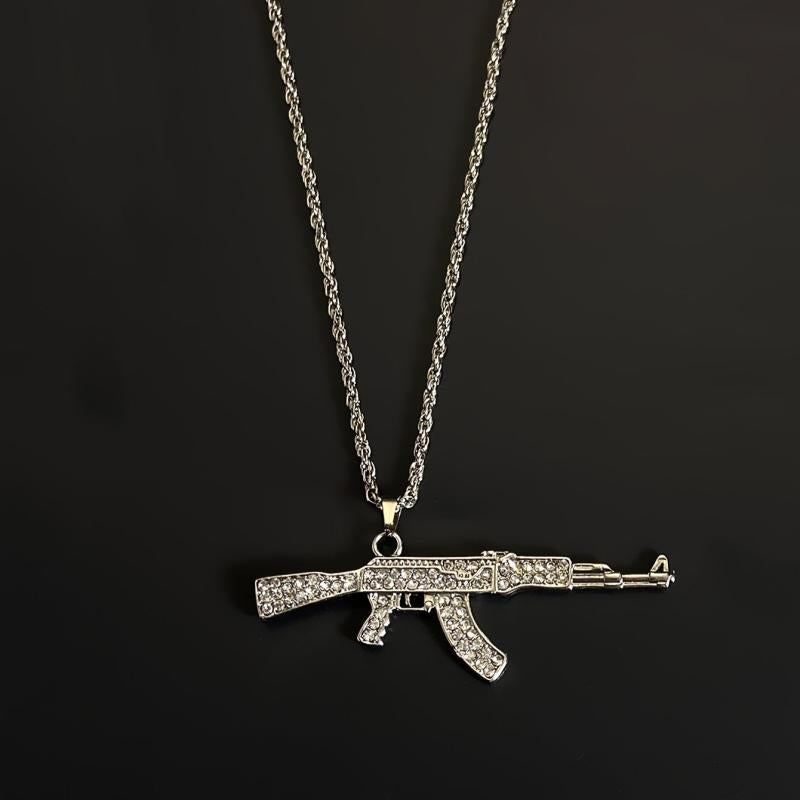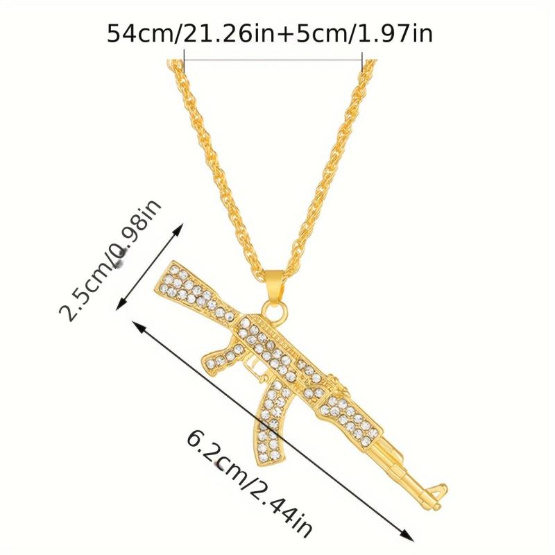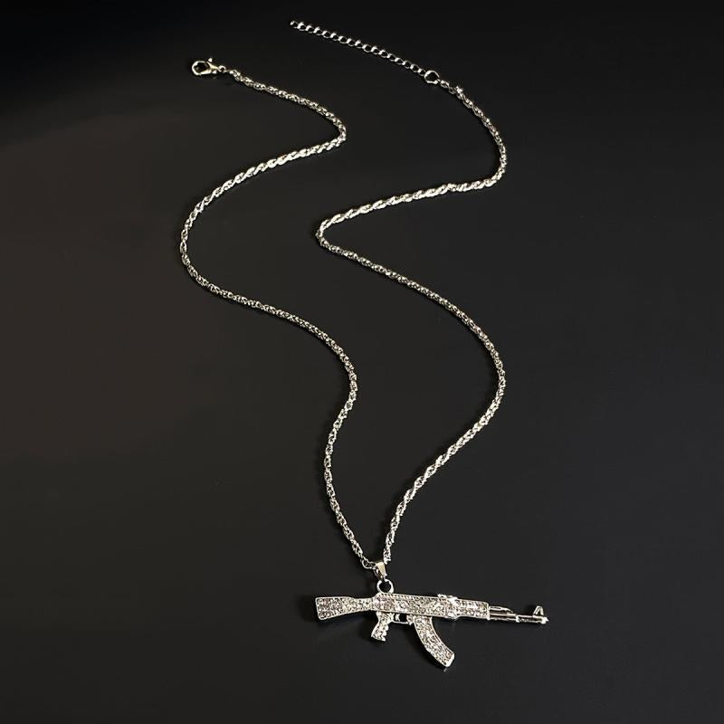 Add an edgy touch to your style with this submachine gun pendant necklace. Perfect for hip hop enthusiasts.