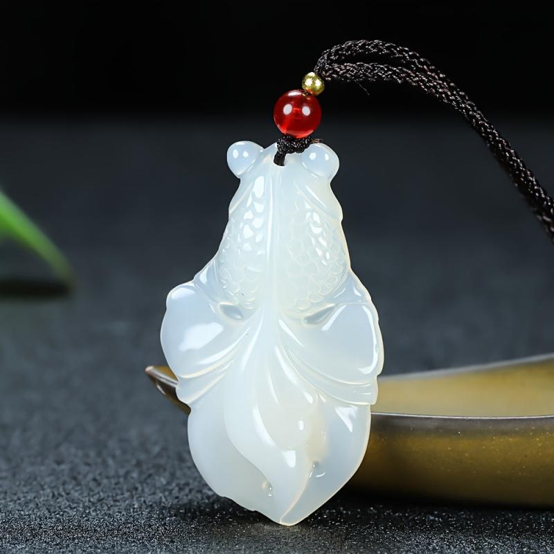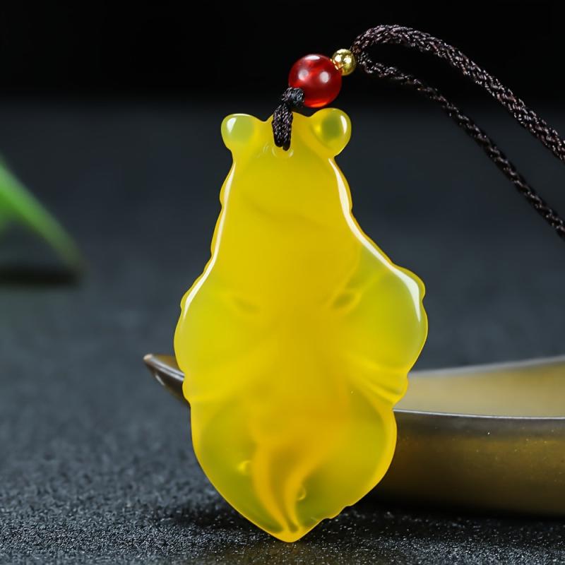 Elevate your style with this artificial fish pendant necklace featuring a translucent leaf with red bead accents on a golden tone chain. Available in yellow, it's perfect for both casual and formal occasions.
