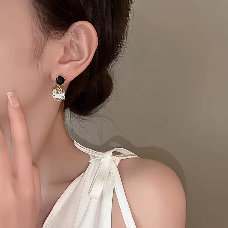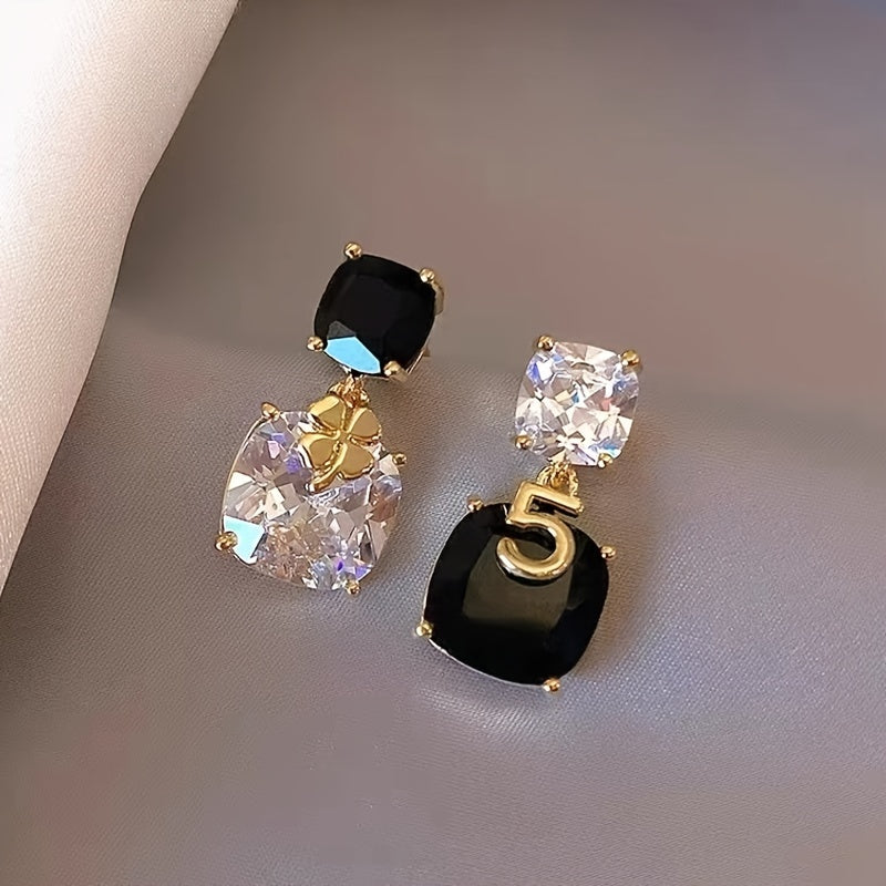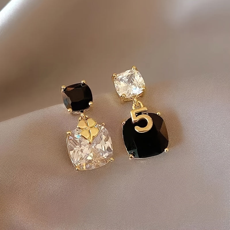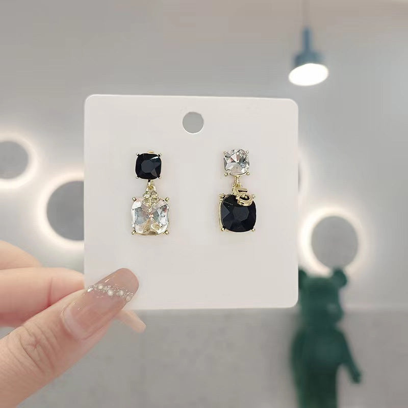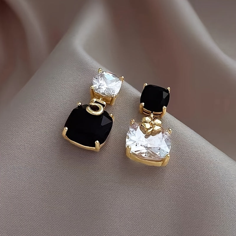 Elegant and unique zircon earrings with asymmetric contrast design, perfect for adding a touch of personal style to your look.