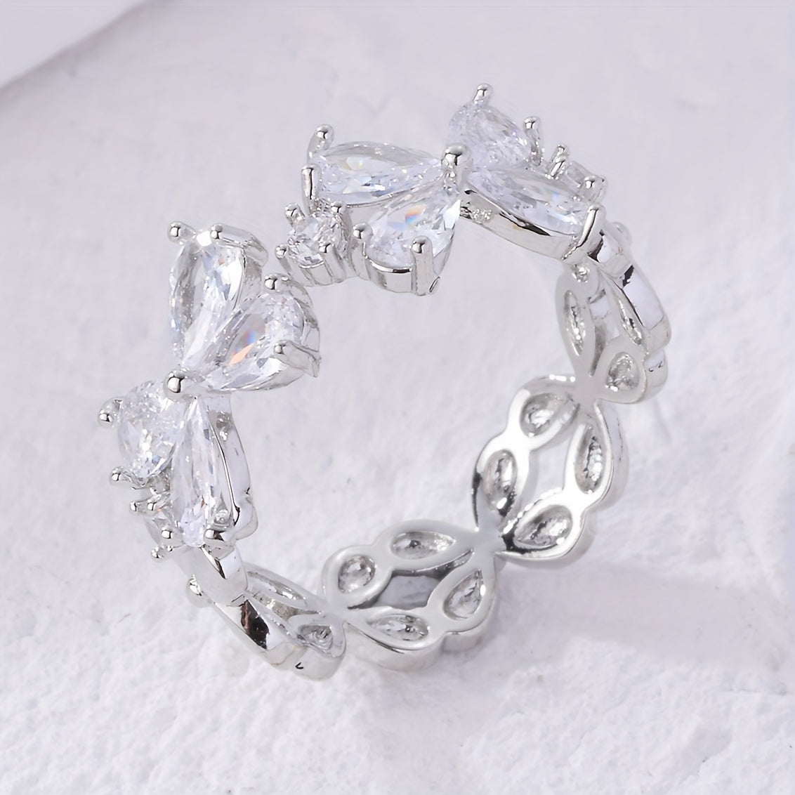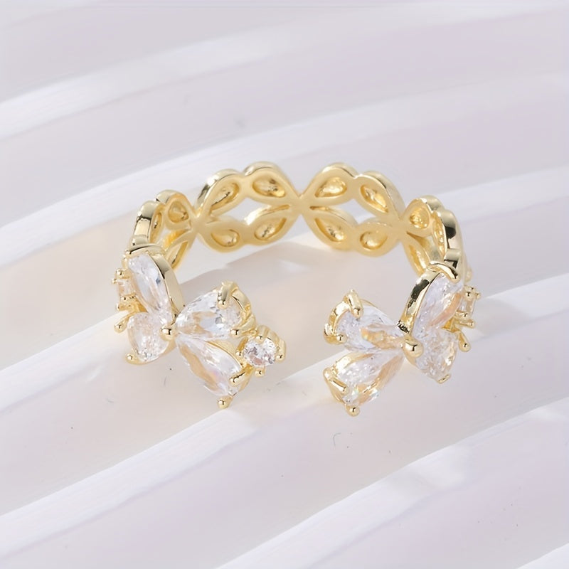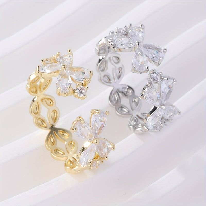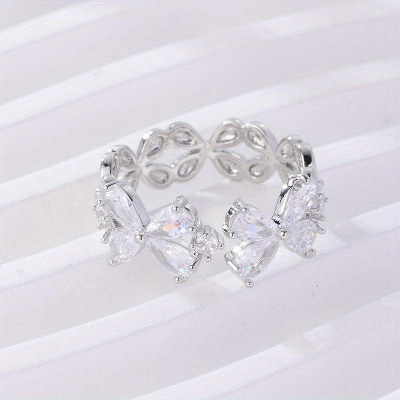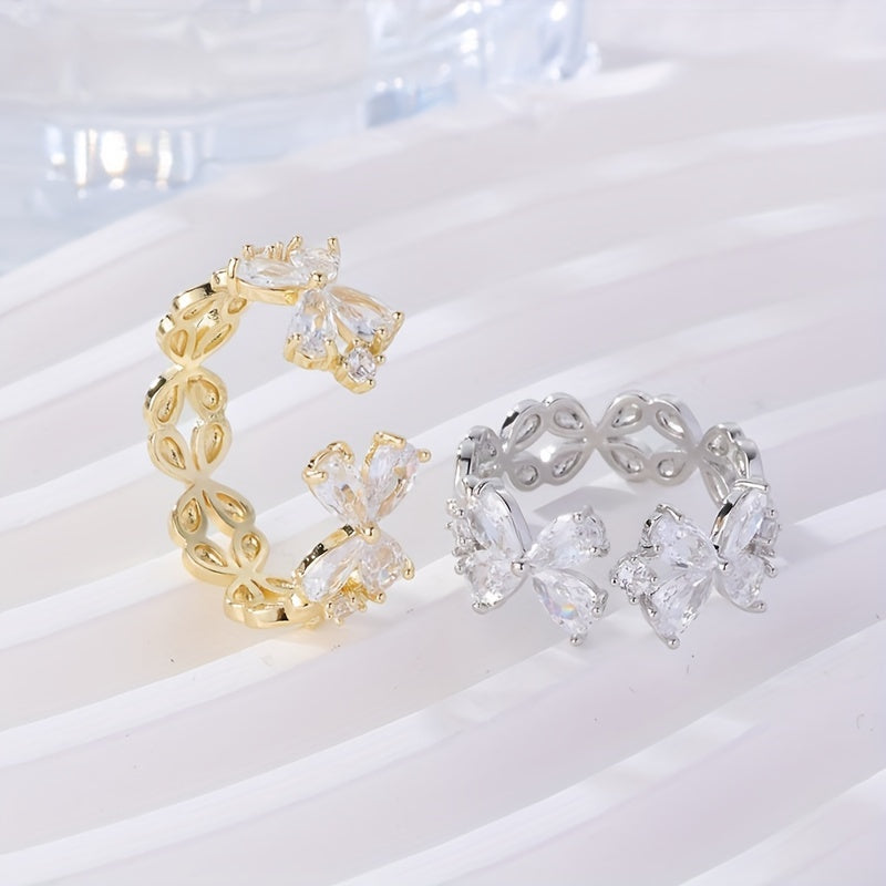 This zircon butterfly ring features an elegant design that can be adjusted to fit any finger size. Perfect for both men and women.