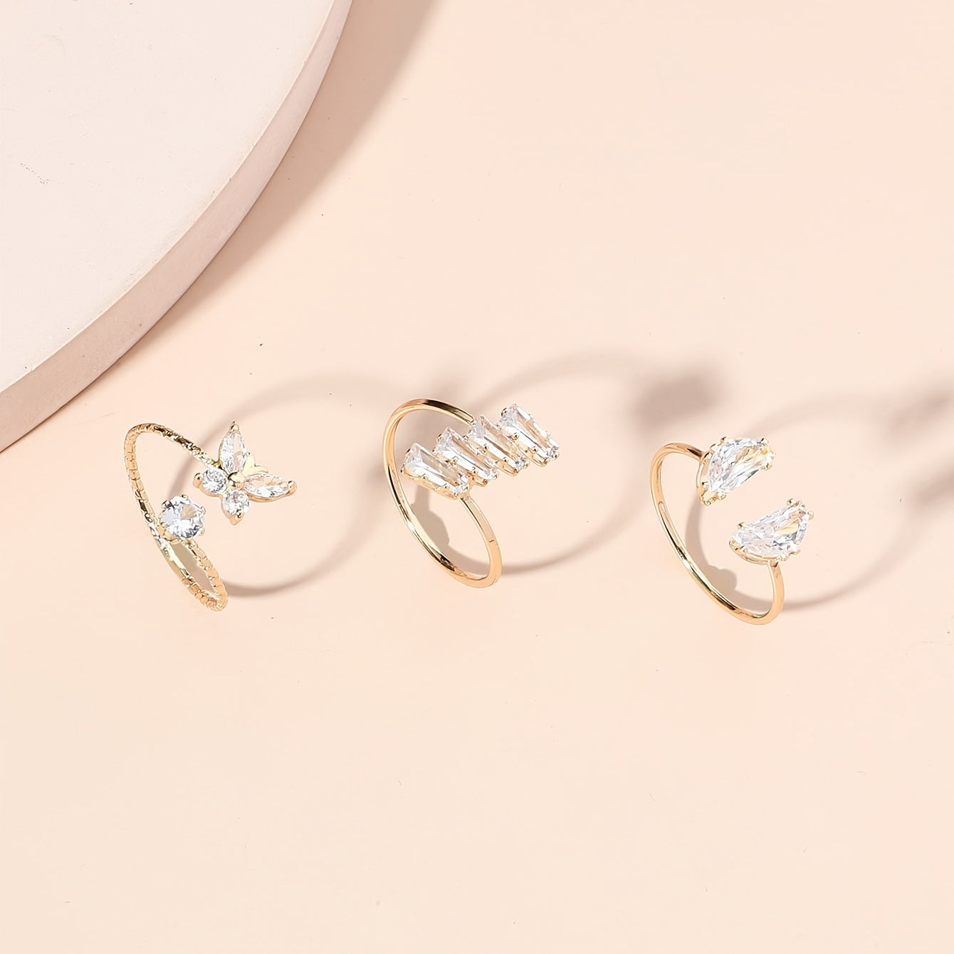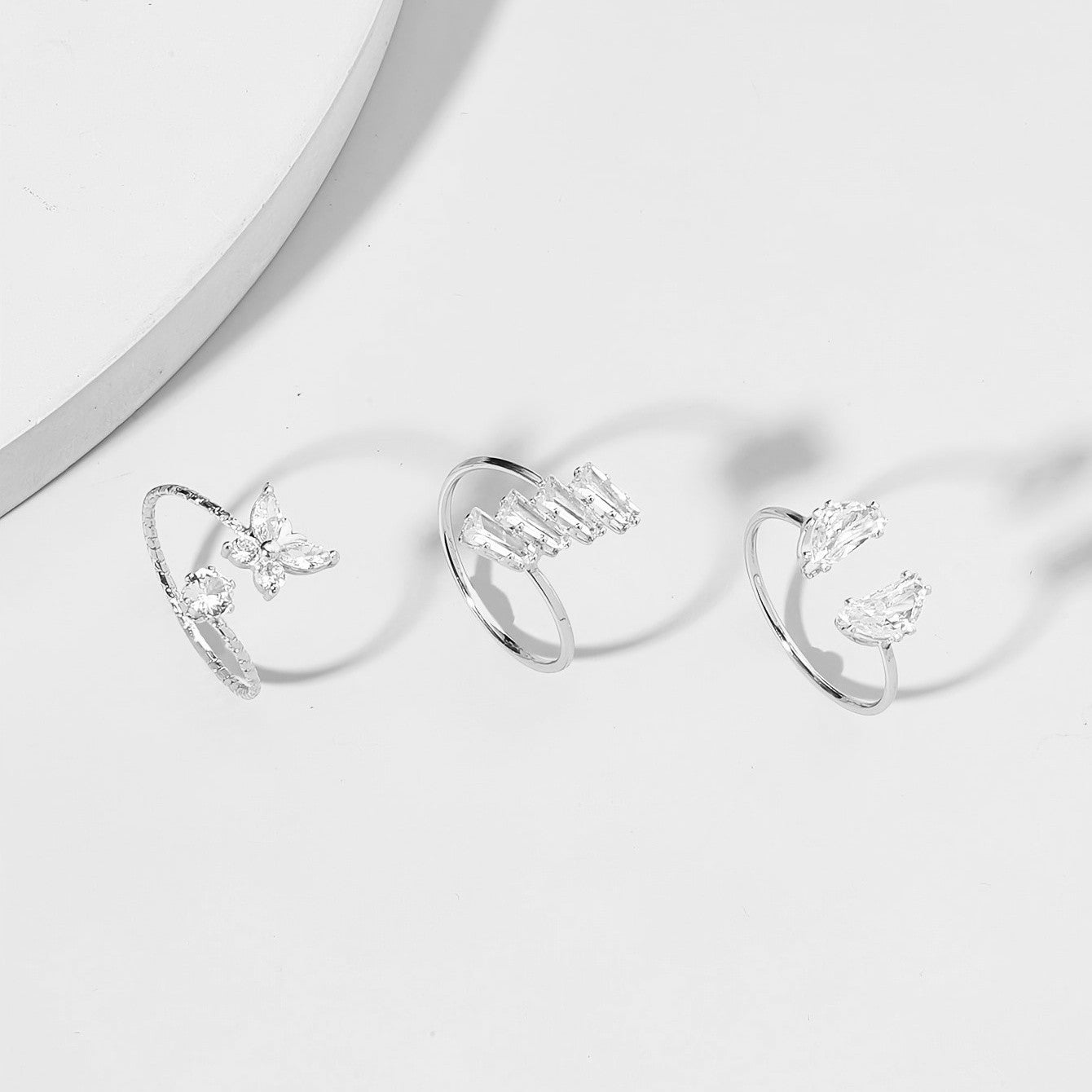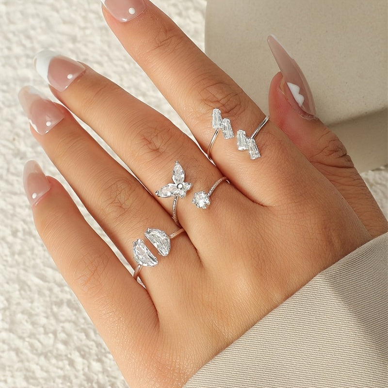 Elegant and stylish butterfly ring set with zircon inlays. Crafted in silver plated metal, this ring features a moon and lightning design, perfect for the lady who loves unique jewelry.