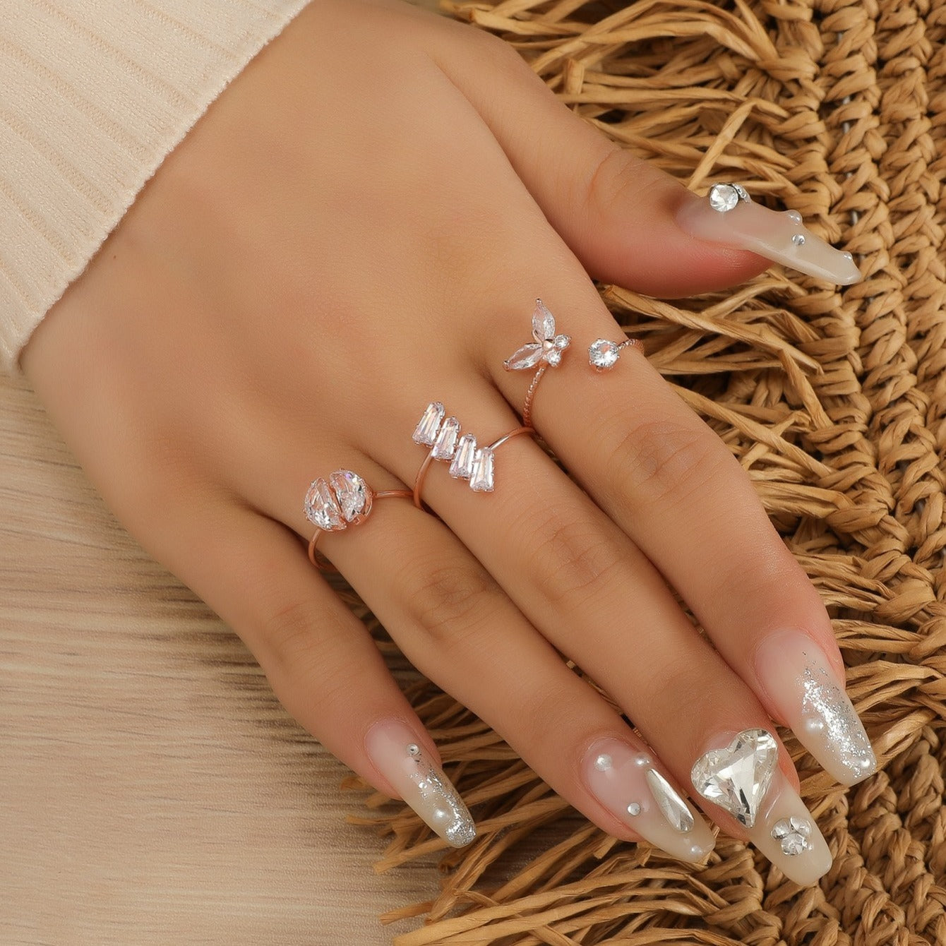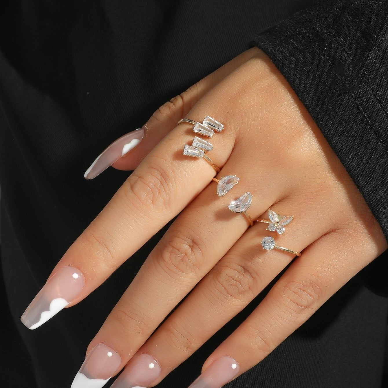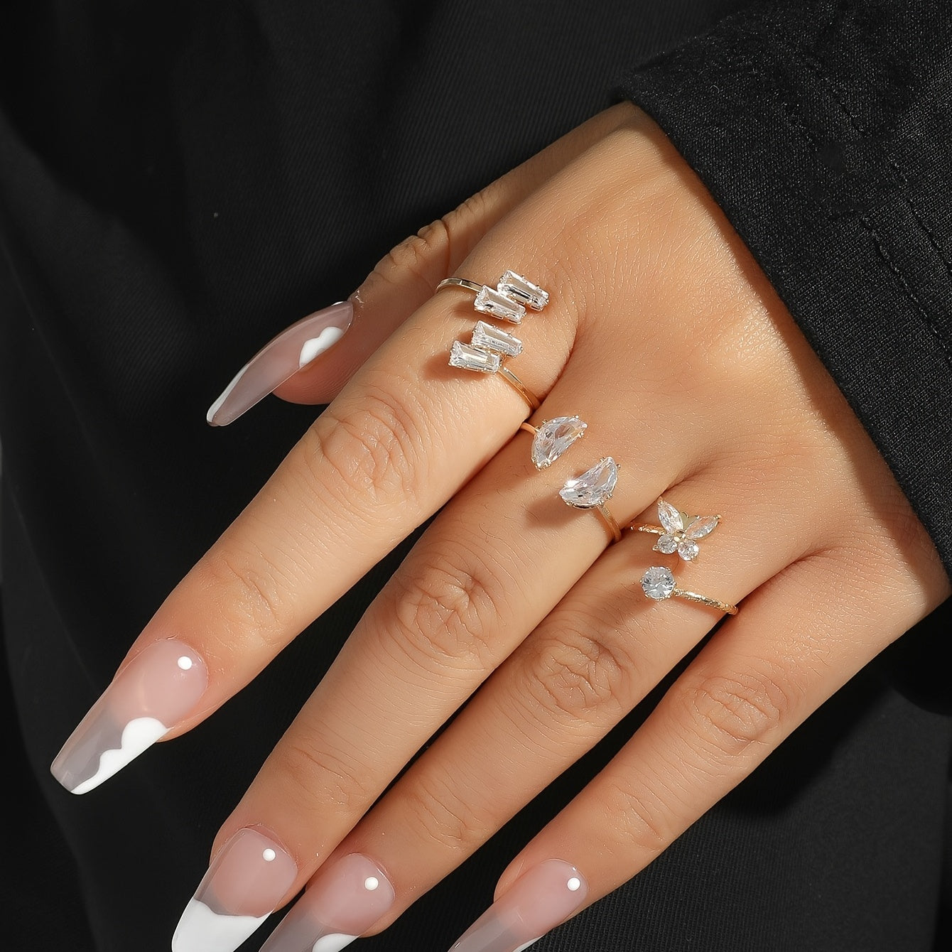 Elegant and stylish butterfly ring set with zircon inlays. Crafted in silver plated metal, this ring features a moon and lightning design, perfect for the lady who loves unique jewelry.