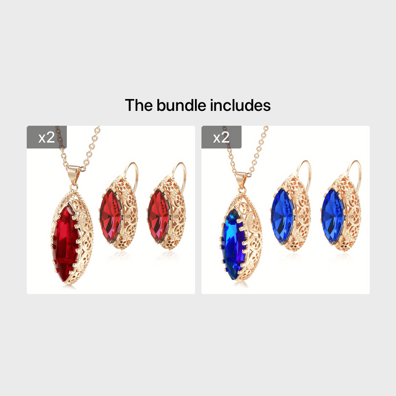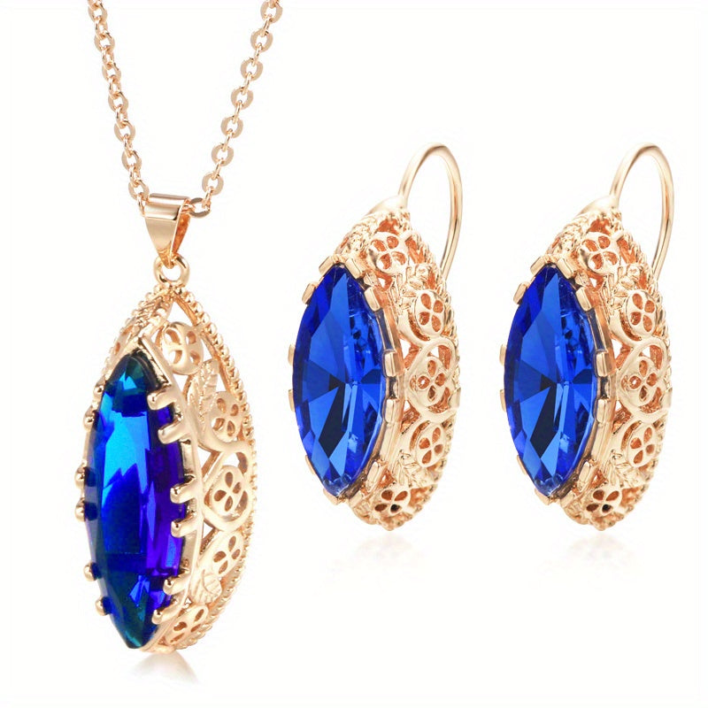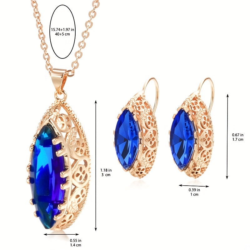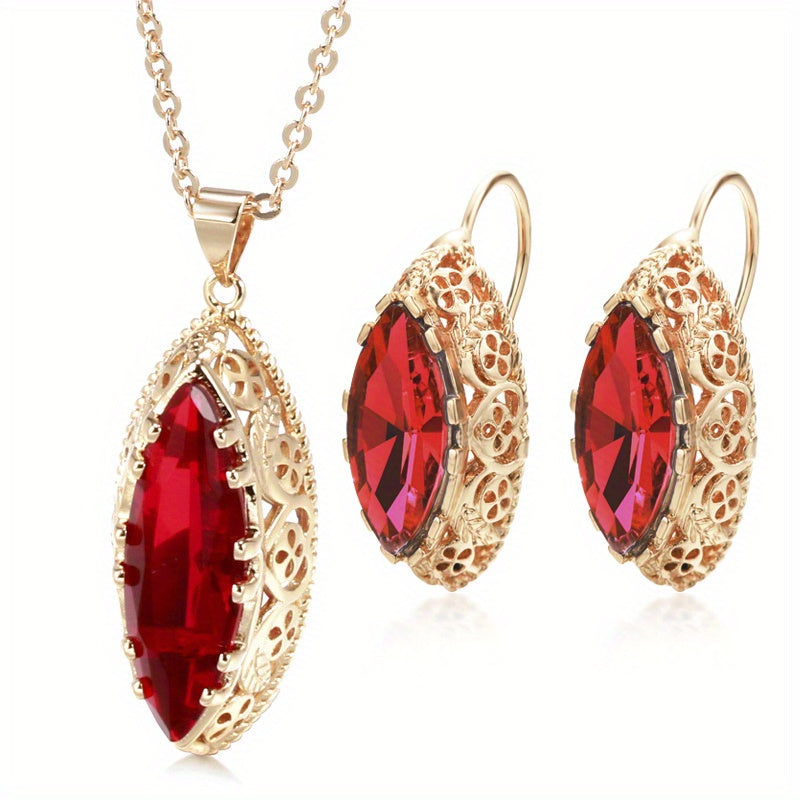 Elegant oval cut zircon earrings, pendant, and necklace set featuring a 4 leaf clover pattern. Perfect accessory for women.