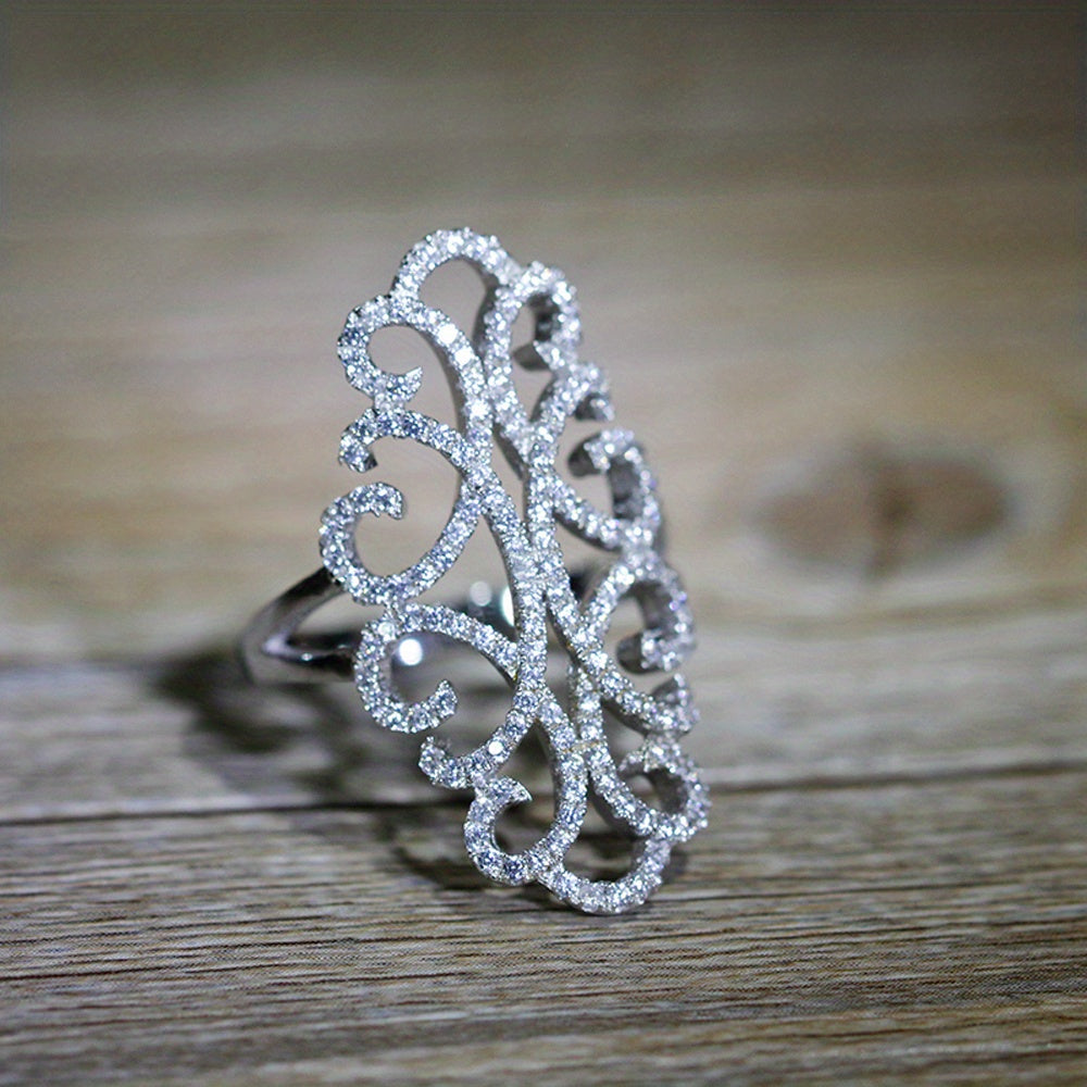 Elegant ring with exaggerated ring inlaid shining zircon flower design, perfect for daily outfits or special occasions. Ideal birthday gift for your loved one.