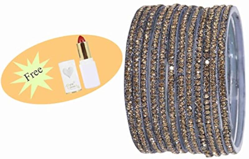 Elegant glass bangle set with zircon gemstone studded glossy finish. Perfect accessory for women and girls. Size: 2.4 inches.