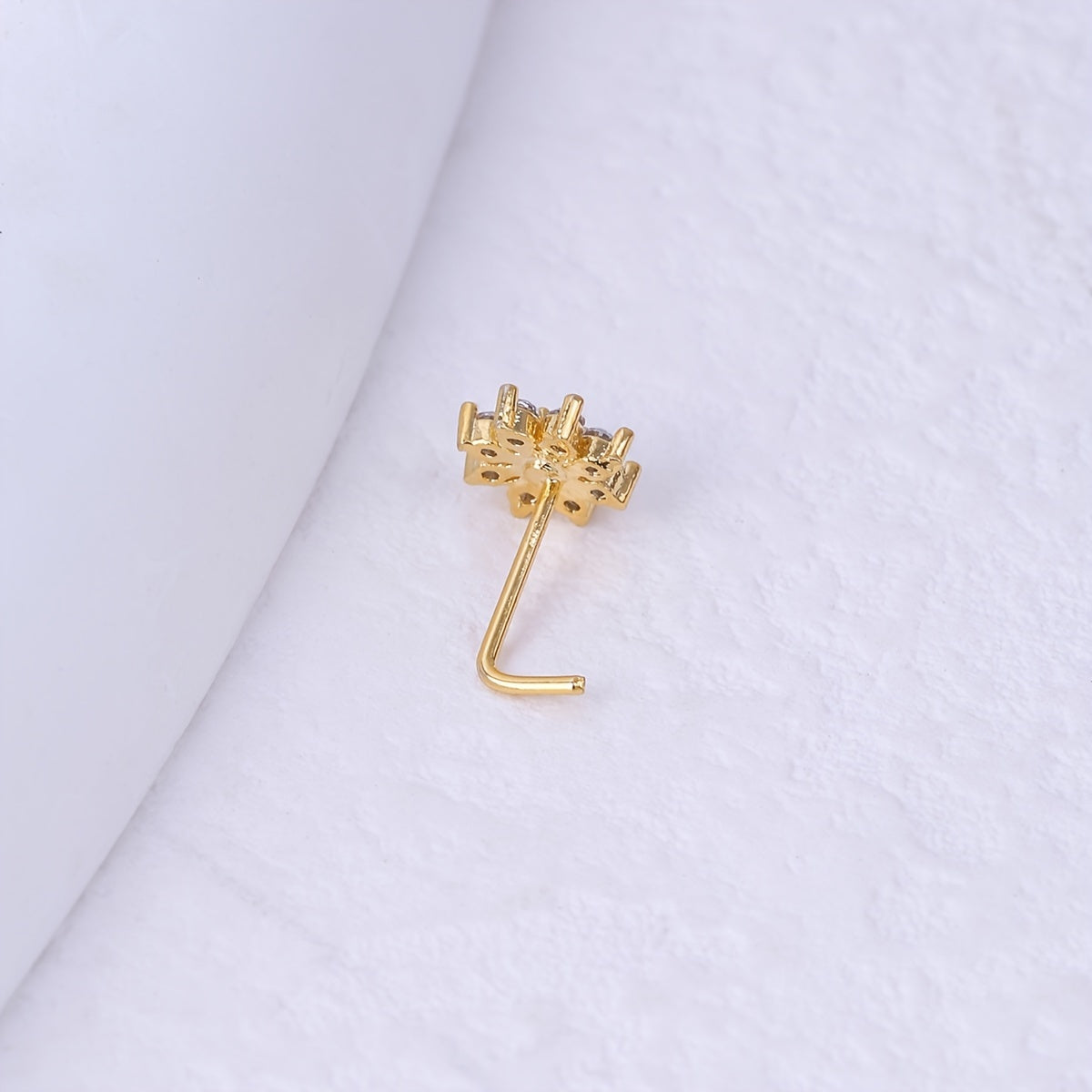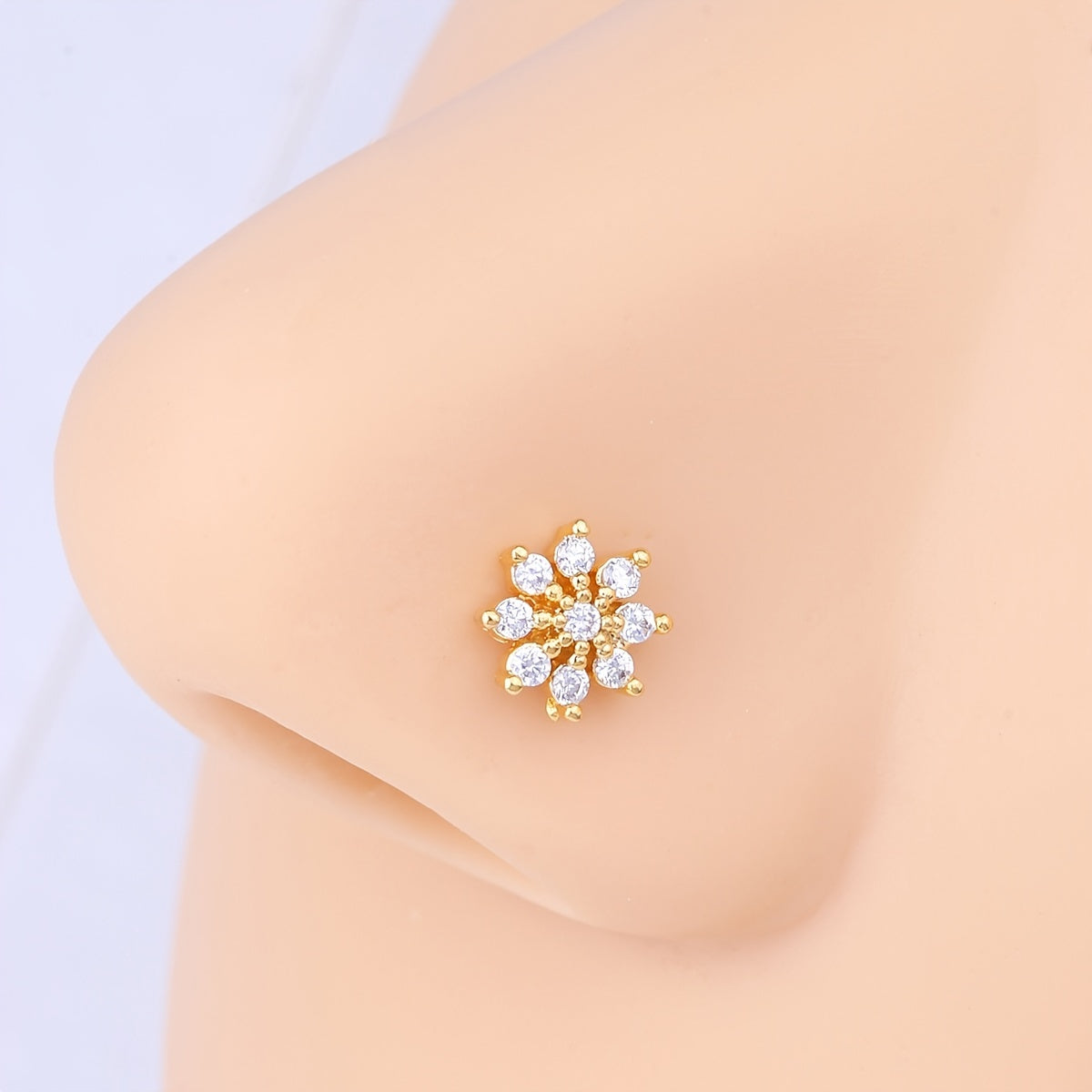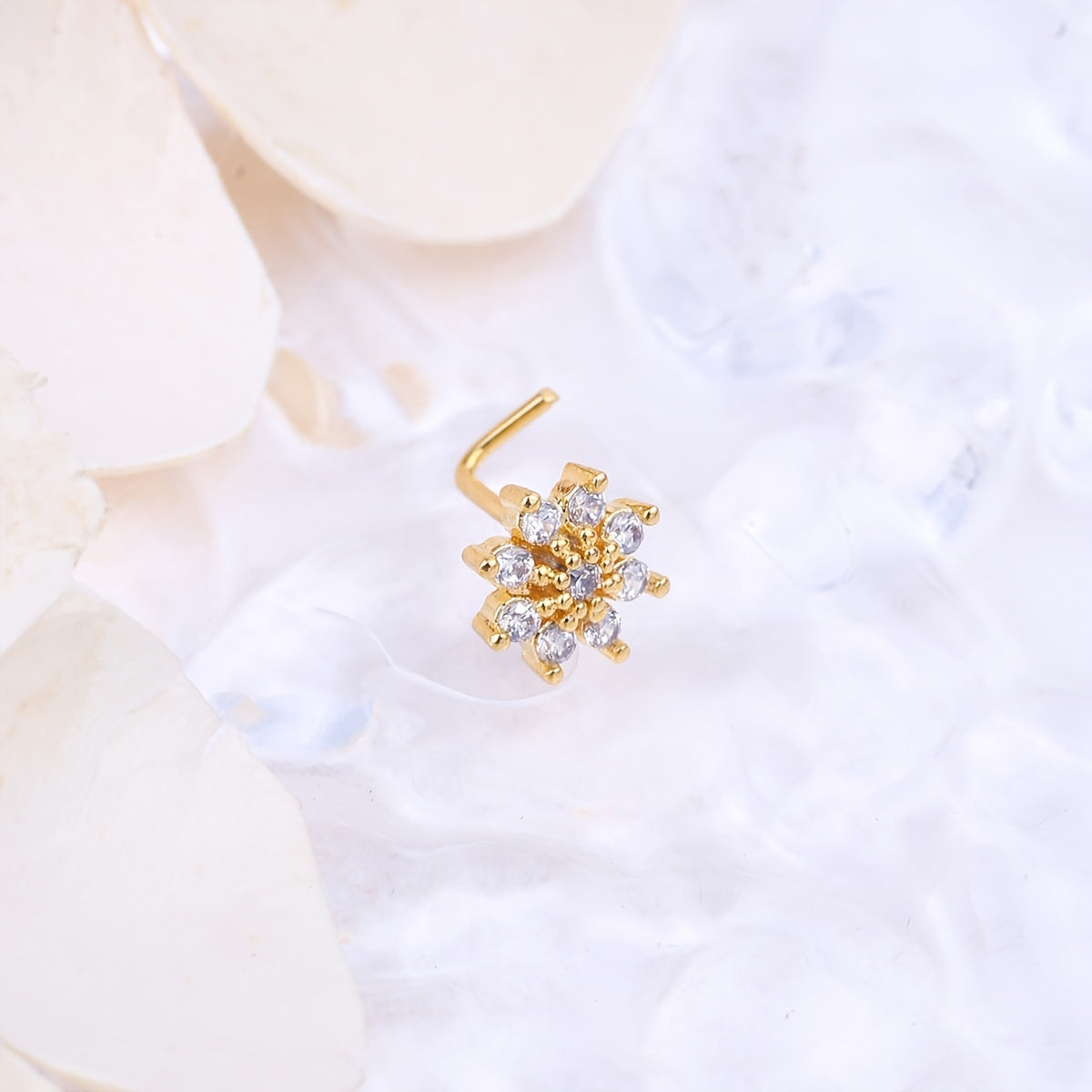 Add a touch of elegance with this delicately crafted flower shape nose ring featuring zircon inlays. Perfect for body piercing enthusiasts.