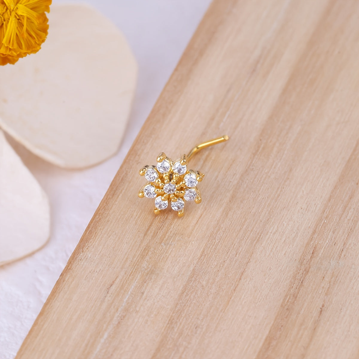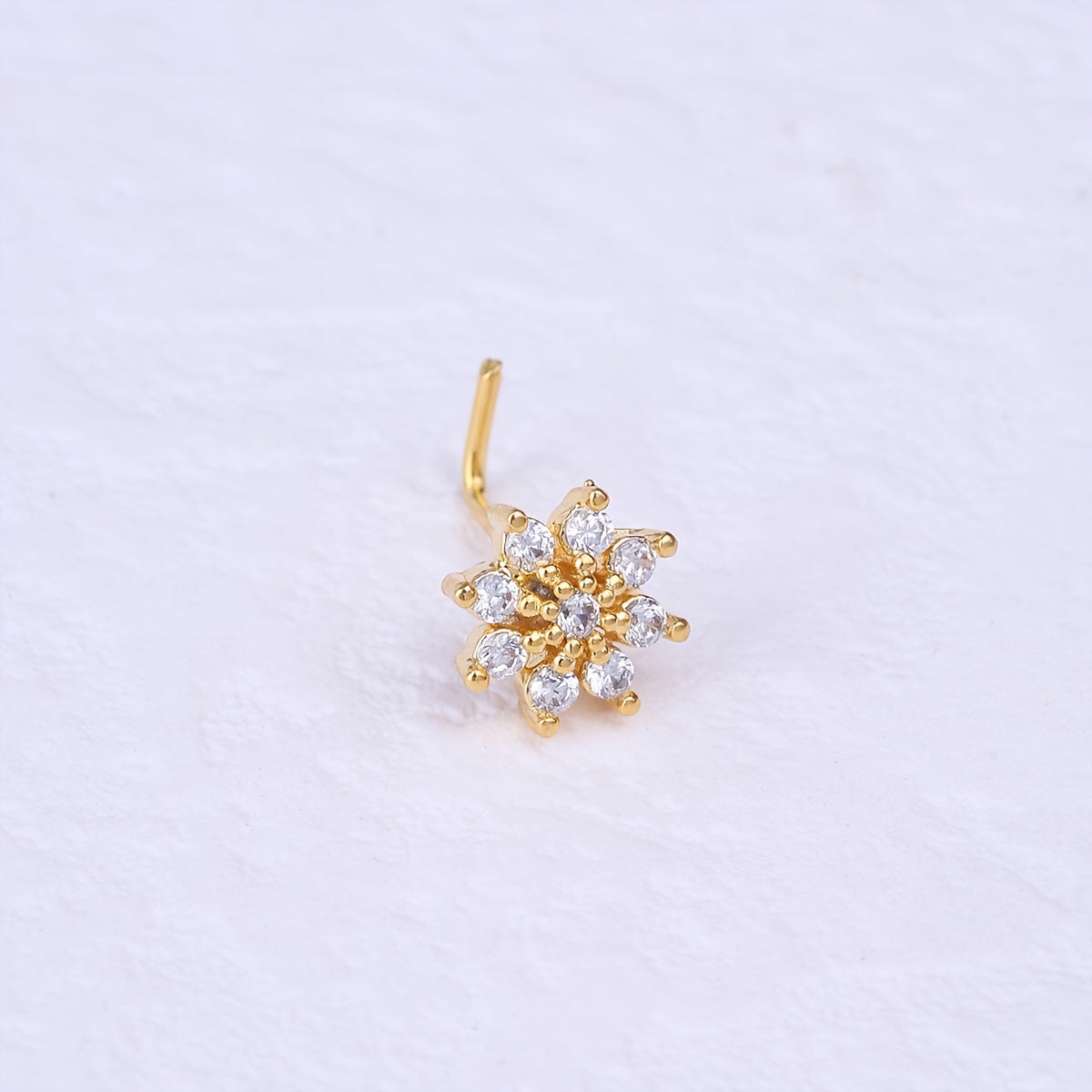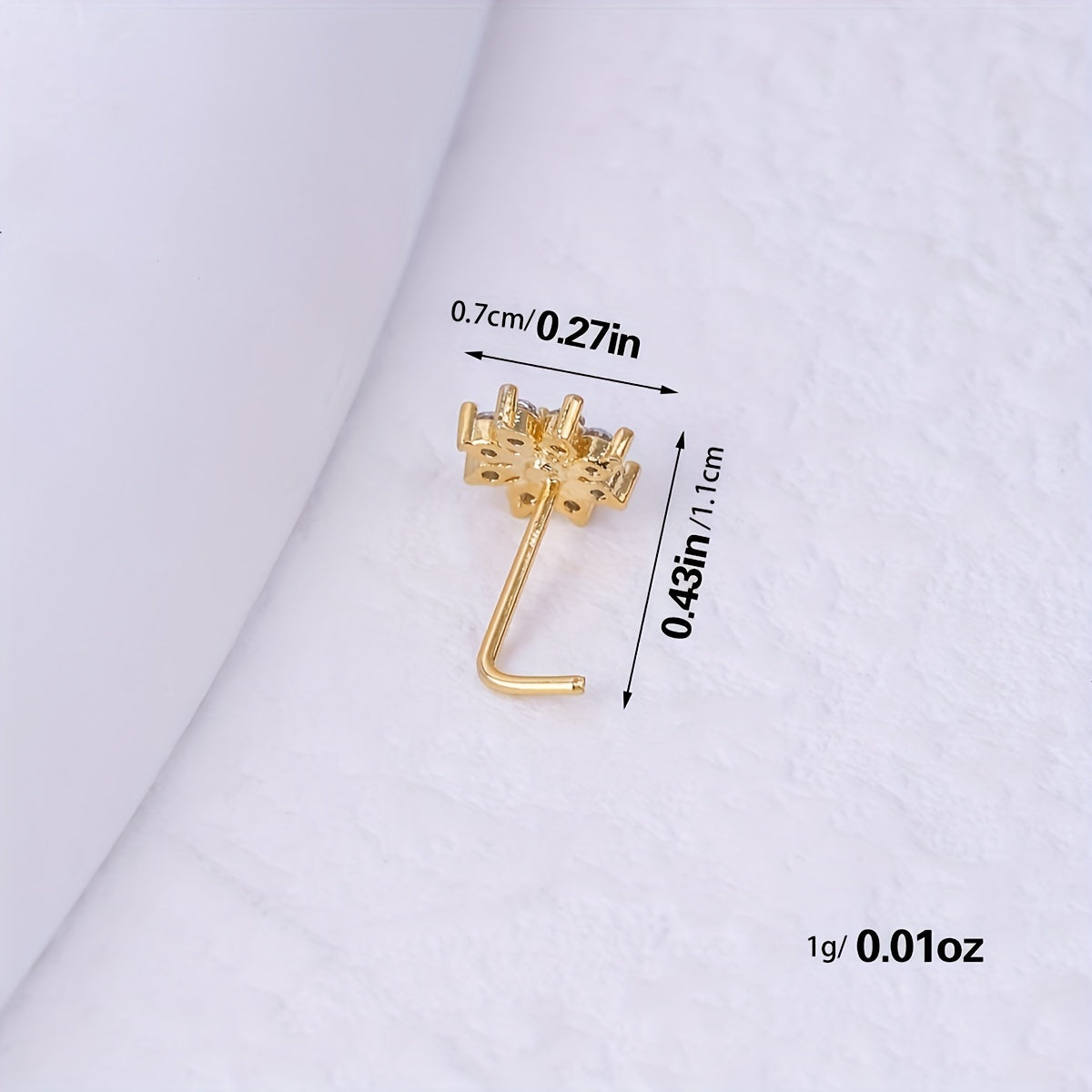 Add a touch of elegance with this delicately crafted flower shape nose ring featuring zircon inlays. Perfect for body piercing enthusiasts.