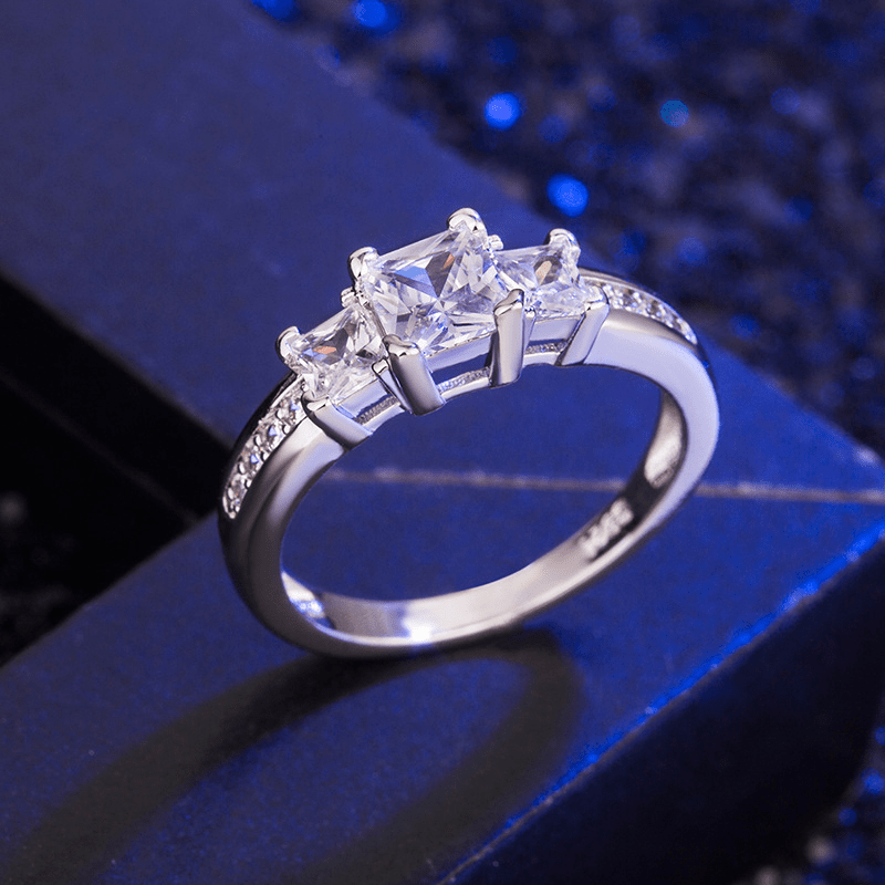 Add a touch of elegance to your look with this inlaid zircon square shape ring. Made of copper, this ring is perfect for everyday wear or special occasions.