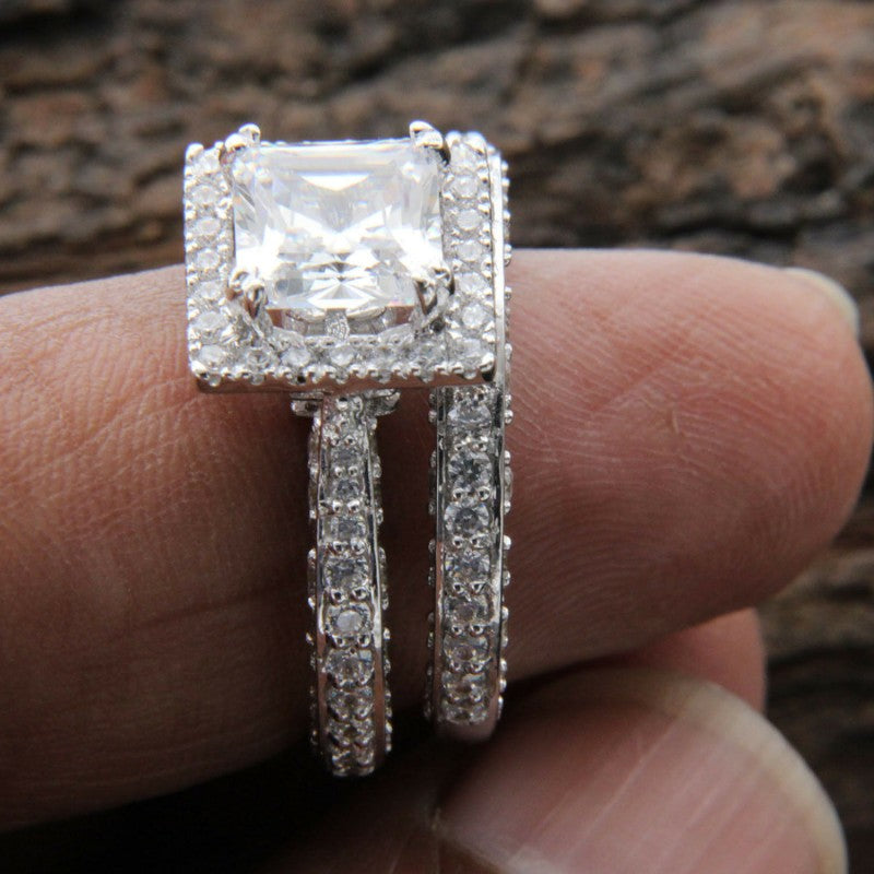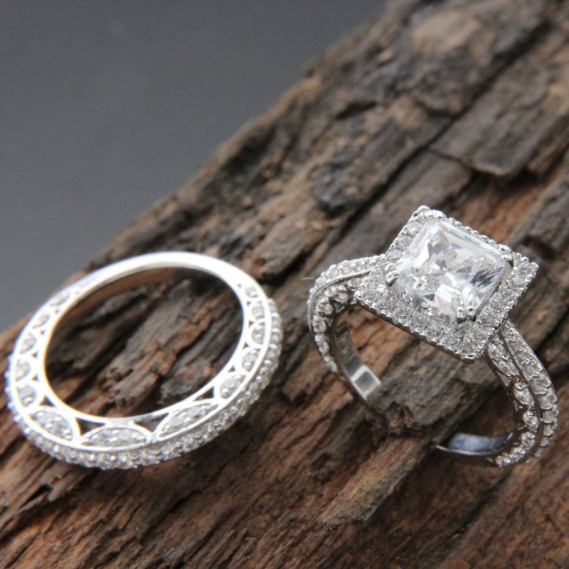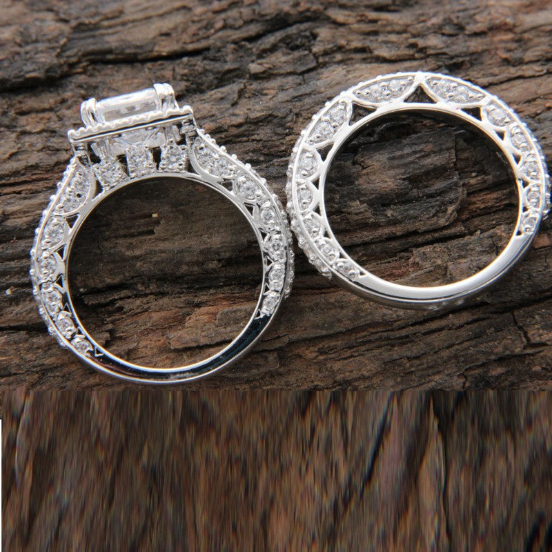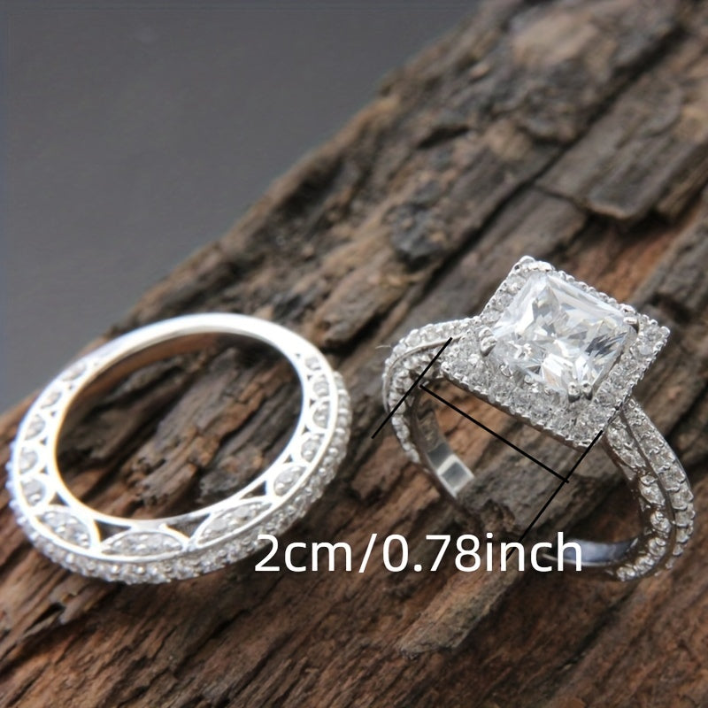 This stunning wedding ring features zircon inlays for an elegant and timeless look that is perfect for both men and women.
