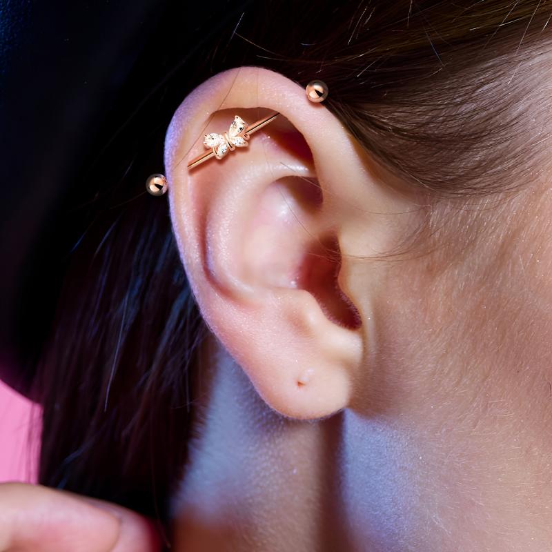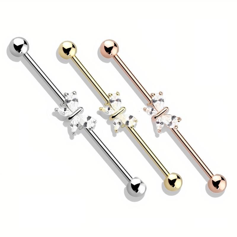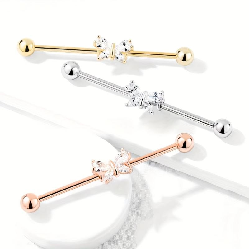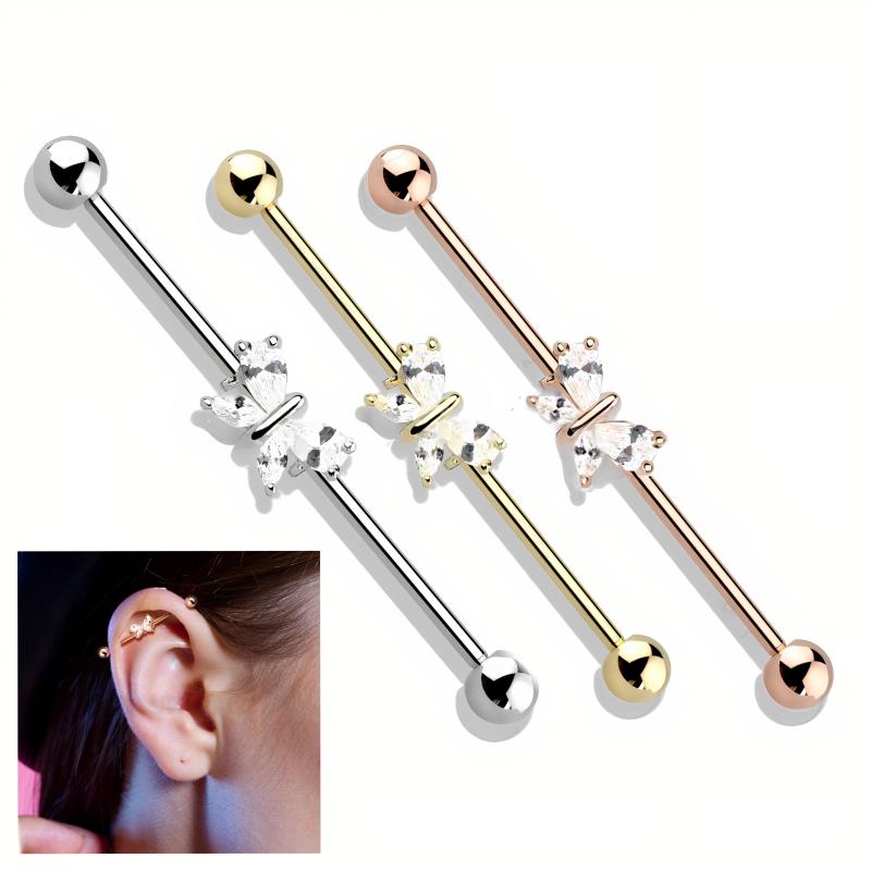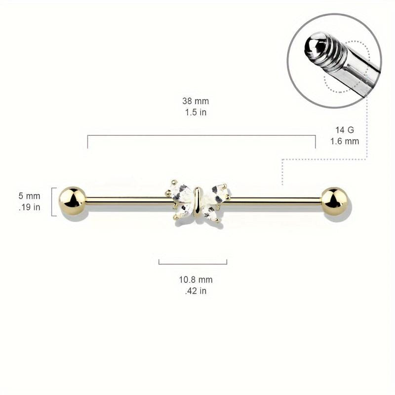 Elevate your ear game with this pack of Ins style zirconia butterfly pierced earrings crafted from 316 stainless steel. The long ear bridge design adds a unique touch to your look.