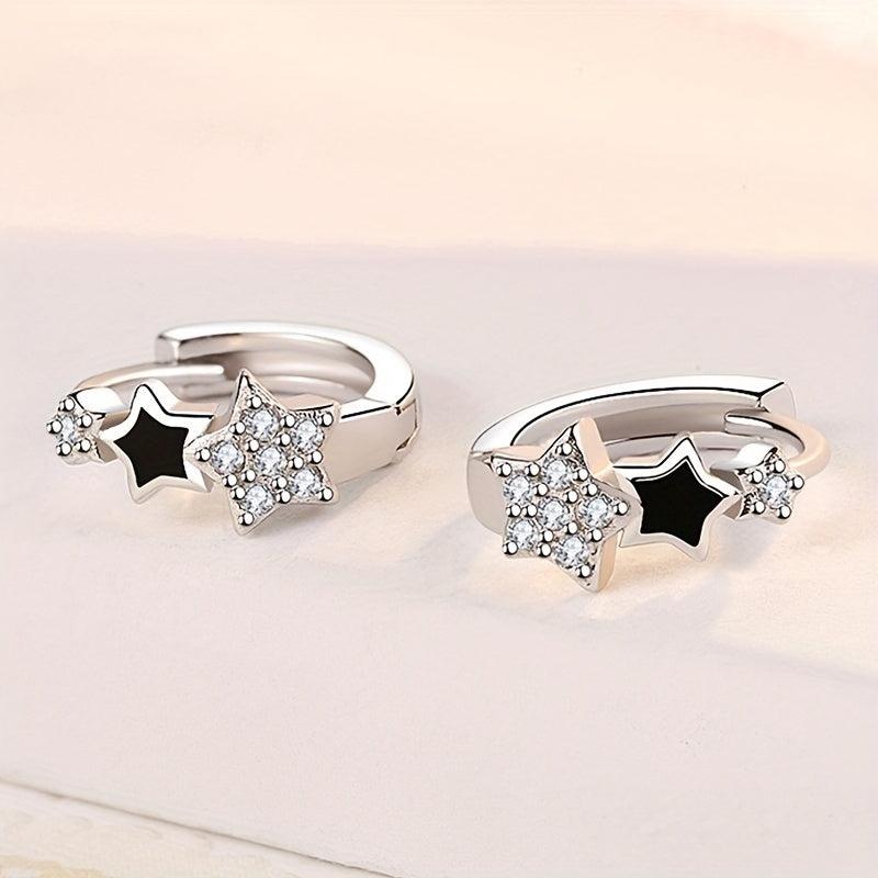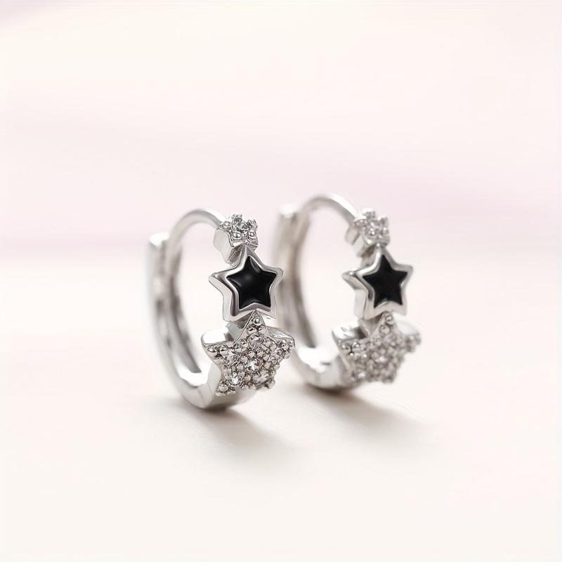 Elegant and stylish hoop earrings featuring synthetic zirconia and enamel star design. Perfect for daily wear and casual occasions.