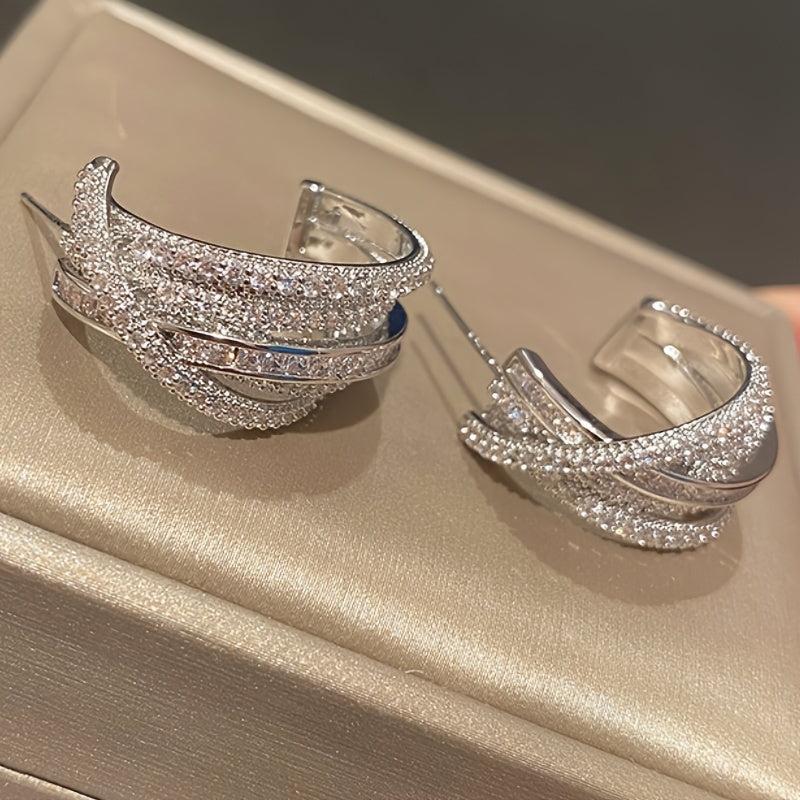 Add a touch of sparkle to your outfit with these stylish earrings. Suitable for daily wear or a night out, these high-end earrings feature synthetic zirconia inlay and a unique C-shaped design.