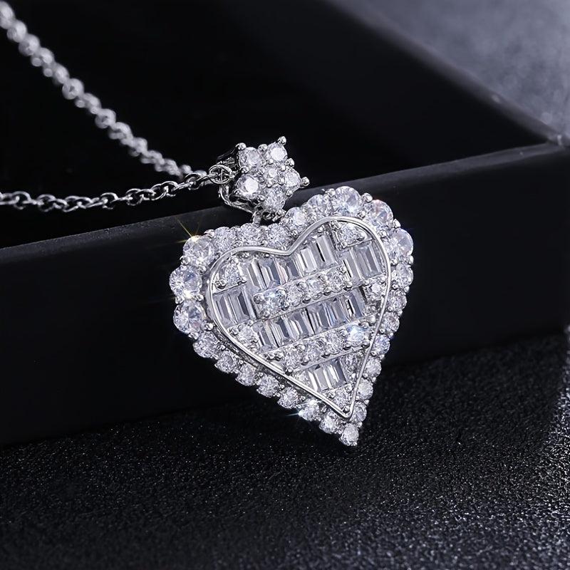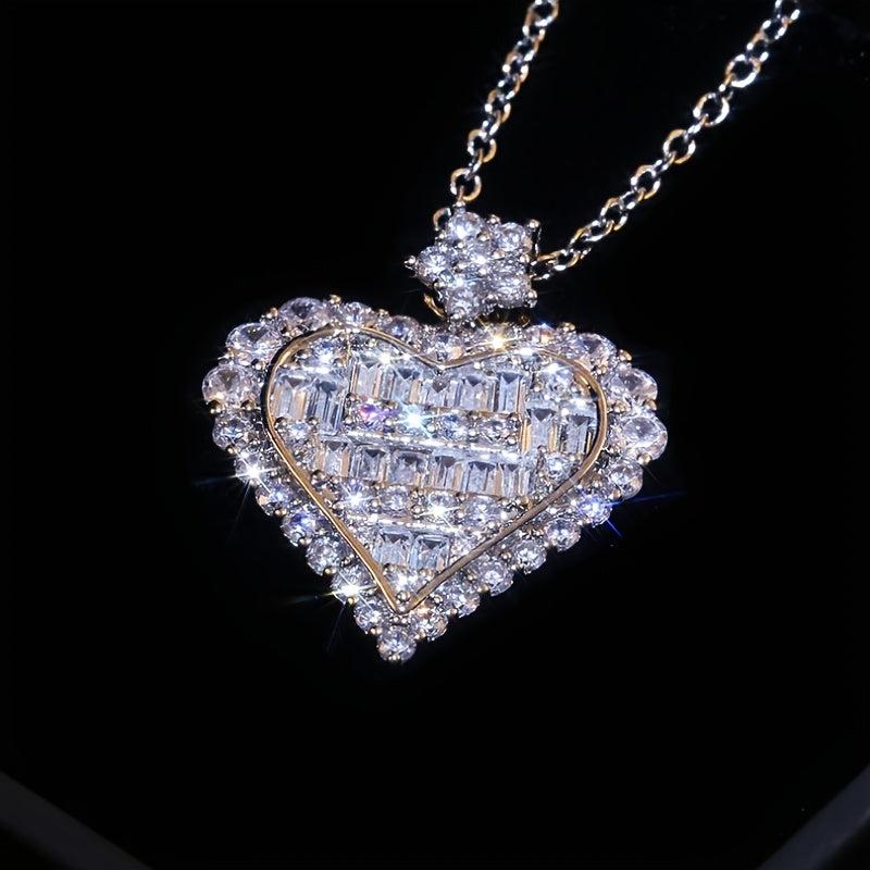 This exquisite necklace features a heart-shaped pendant adorned with zirconia for a touch of elegance.
