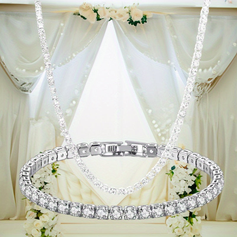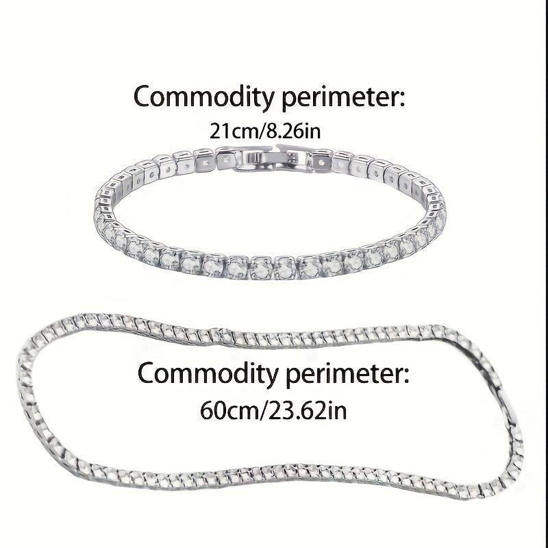 Enhance your style with this elegant zirconia necklace and bracelet set. Perfect gift choice for men, couples, or women.