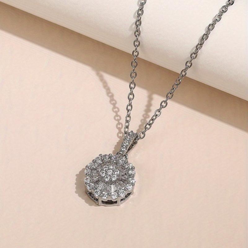 This elegant pendant necklace features a round zirconia stone in a pave setting. Perfect for daily wear and casual occasions.