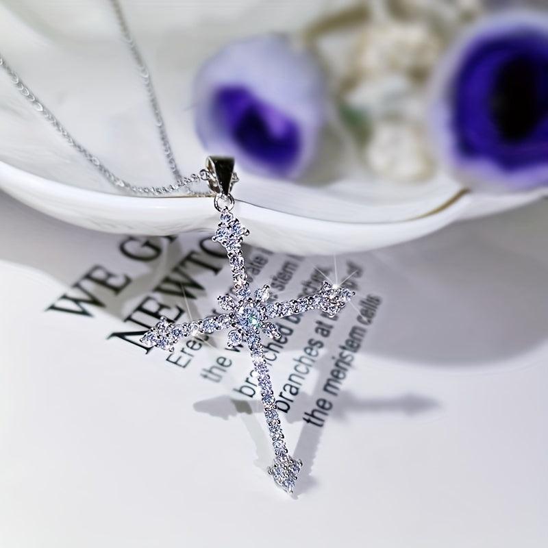 Add a touch of elegance with this stunning zirconia star cross necklace. Made with high-quality silver plating, this jewelry piece is perfect for both men and women.