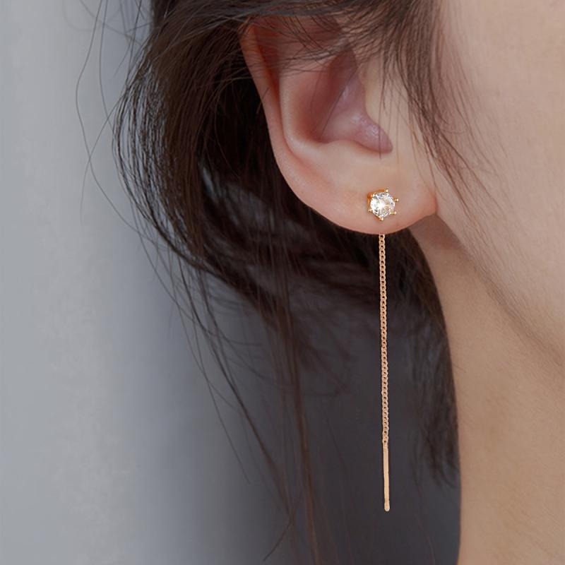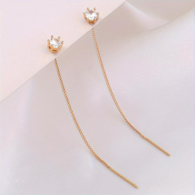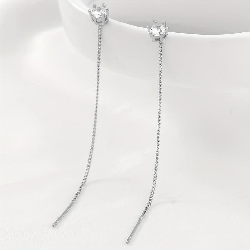 Elegant zirconia tassel earrings with long fringe design, perfect for adding a touch of sophistication to any outfit.