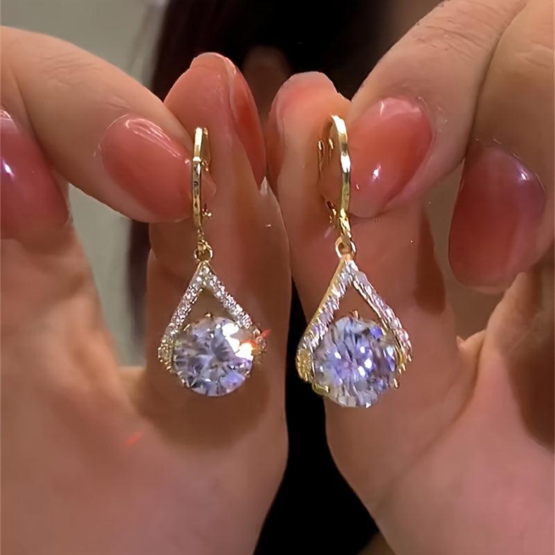 Add a touch of elegance with these fashionable water drop earrings made of synthetic zirconia. Perfect jewelry accessory for any outfit.