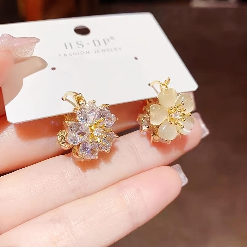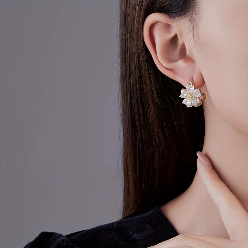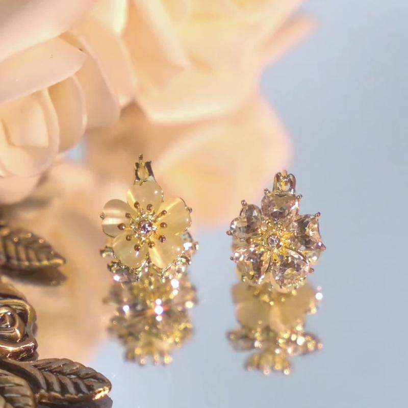 Add a touch of elegance with these minimalist stud earrings featuring twin cat's eye flowers in a basket design.