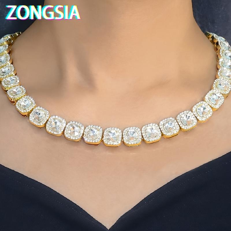 ZONGSIA Women's Cuban Chain Necklace Iced Out Bling Golden Plated