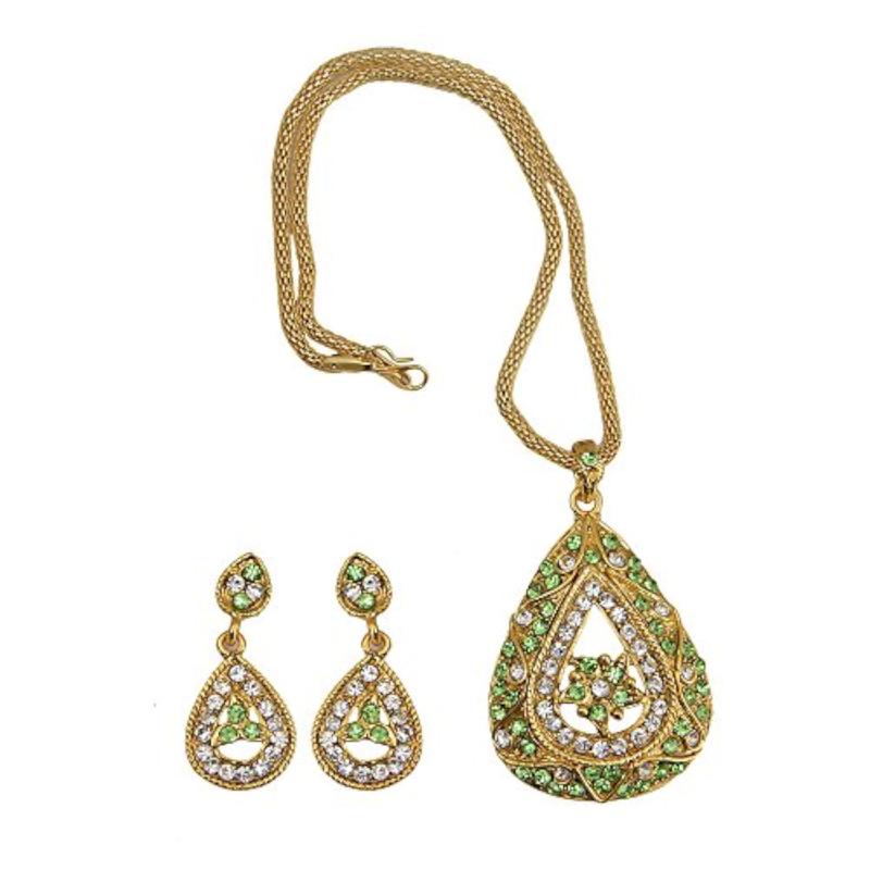 Complete your look with this stunning pendant set featuring a beautiful design. The set includes a pendant necklace and matching earrings, all made with high-quality materials.