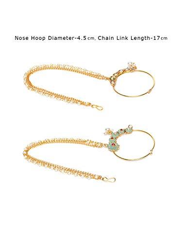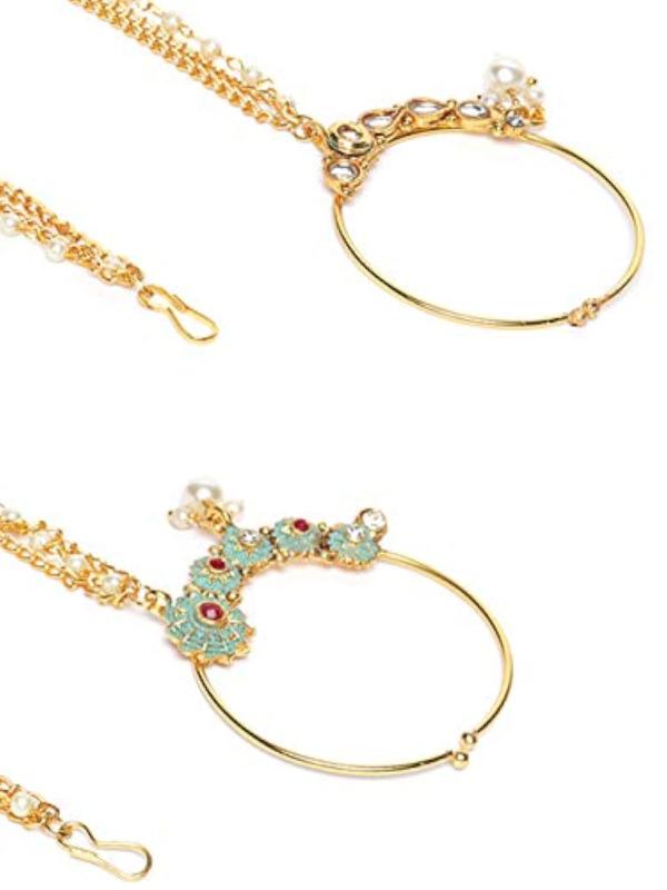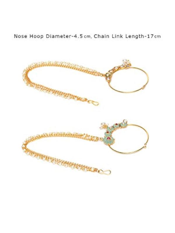 Enamelling & Kundan Bridal Hoop Nose Ring With Chain Link ZPFK9587